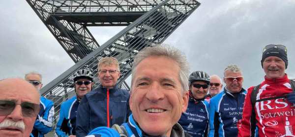 Unsere Klassik Tour 2025 Ein Phantastisches Bike Wetter. Sieben Mann an der Brücke, Zwei in Bergweiler, zum ersten mal dabei auf dieser Tour, Meini und