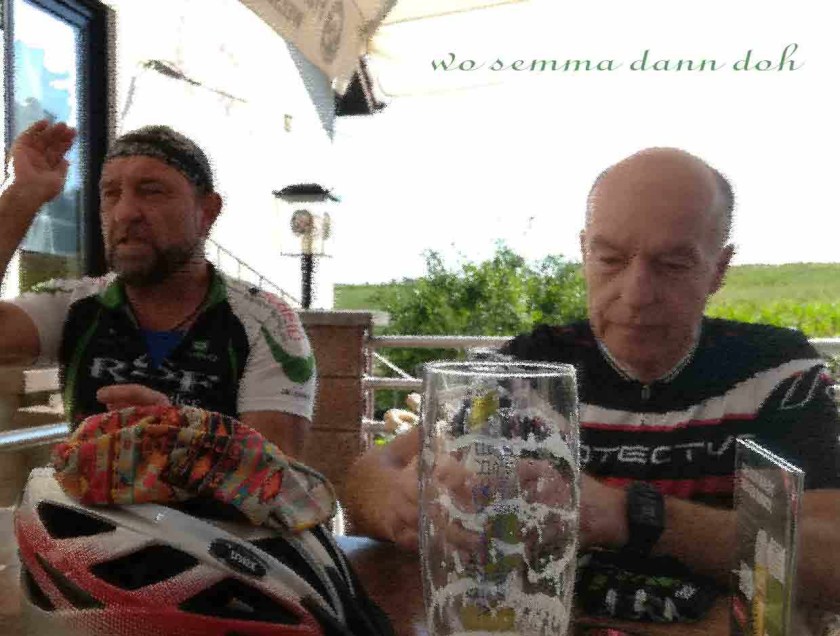 gleich gemotzt, aber keine 60 Kilometer. Hab dann gesagt fahren wir nur die hälft. Am Römerhof haben wir dann die Runde abgebrochen und ein Iso Getränk zu uns genommen, bevor wir uns auf den Rückweg machten. Wegen der Rally brauchten wir keine Umleitung zu fahren, sind gleich nach Selbach, am Egon Gedächtnisweg entlang, zum Hanacker ein stück Joh. Kühnweg und durch die Lach nach Weiler, durch die Niederwies nach Hause.