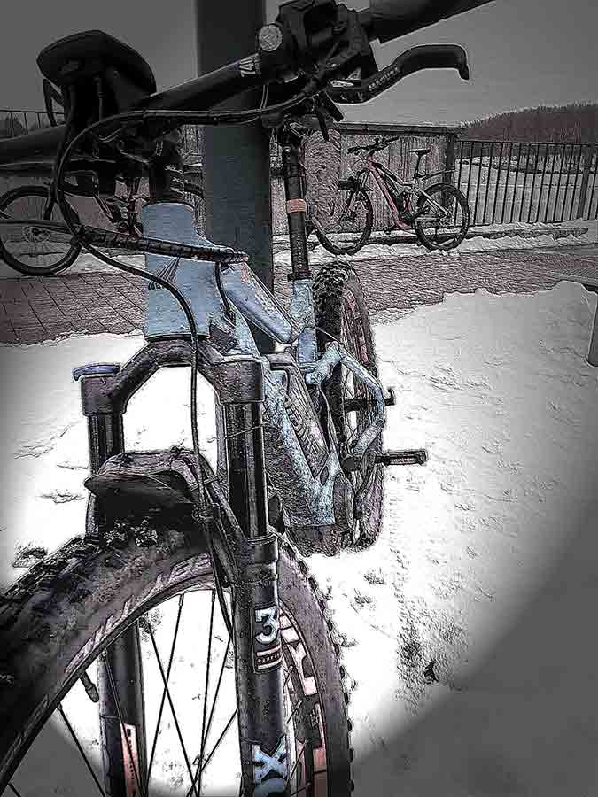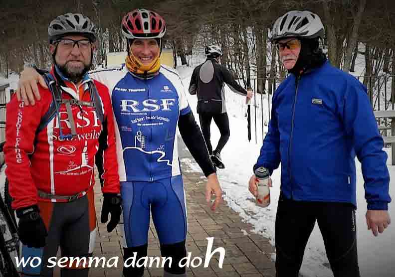 Dreimal VSE und zweimal Muskelkraft so lautete die Aufstellung am Treffpunkt. Zunächst wurde sich auf eine Strecke verständigt, die den Witterungsverhältnissen angemessen erschien. Richtung Lebach, oder See? das war die Frage! Der Bostalsee hatte einmal mehr die größere Anziehungskraft. Aufgrund der widrigen Verhältnisse versuchten wir möglichst viel auf geteertem und geräumten Geläuf die Strecke zu bewältigen. Trotzdem wurde stellenweise höchste Fahrkunst abverlangt, weil Spurrinnen im Schnee bzw. Schneematsch die Bodenhaftung erschwerten. Ist aber alles gut gegangen! Die Pause legten wir an einem Unterstand auf dem Damm ein, ist unsere Volksbank doch noch völlig eingeschneit und keine Spur von Räumung zu erkennen. Von wegen: wir machen den Weg frei! Schöne und flotte Tour, Hauptsach an der frischen Luft!