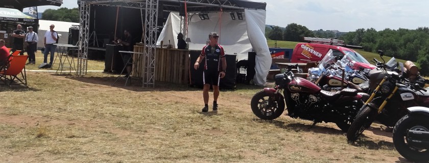 Zum warmfahren erstmal nach Bergweiler, aber dann den Blasiusberg hoch zur dick Eich und über den Herrmann Lönspfad, am Schaumberg vorbei bis in die Wareswaldstrasse. Über die Trasse ging es bis Bliesen wo wir abbogen, Richtung Skulpturenstrasse. Den Felsentrail runter und über die B41 und schon waren wir auf dem Bikertreffen.
