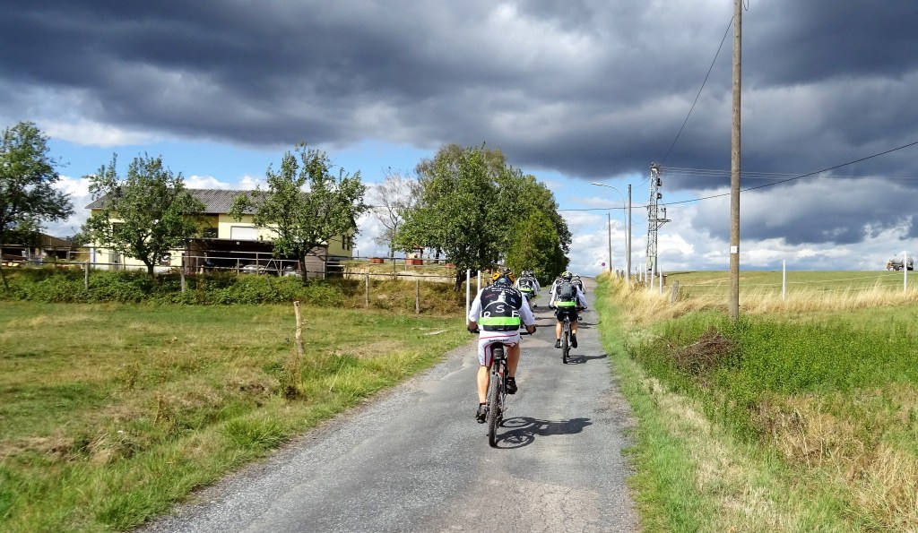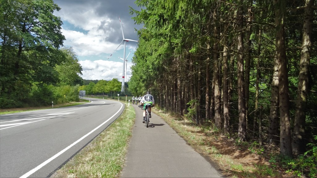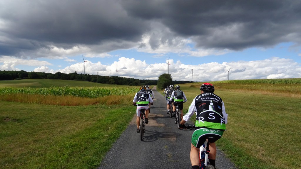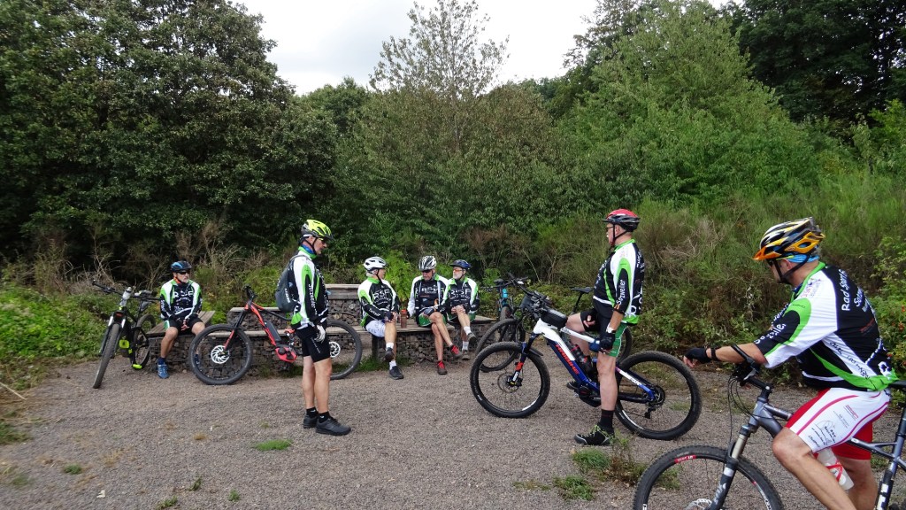 Ich weis nicht wer die Strecke zusammen gestellt hat, aber es war eine schöööne Tour. Wir fahren erst im Engscheiderwald rum, dann etwas interessanter, wegen den Trails, zum oberen Klingelfloss und zur Josefs Kapelle. Weiter durch Aschbach, zum Matzenböscher Wald und nach Niedersaubach hoch zum Tanneck, Richtung Gresaubach und Bettinger Wald und zum Steinbruch. An der Aussichtsplattform haben wir kurz gehalten. Ein Blick rüber nach Michelbach und über die Oppener Kuppe ist auch schön. Bevor wir durch die Kohlaufheck nach Höchsten fuhren hat uns noch ein Schauer erwischt der uns zum Unterstellen an der Schutzhütte zwang.