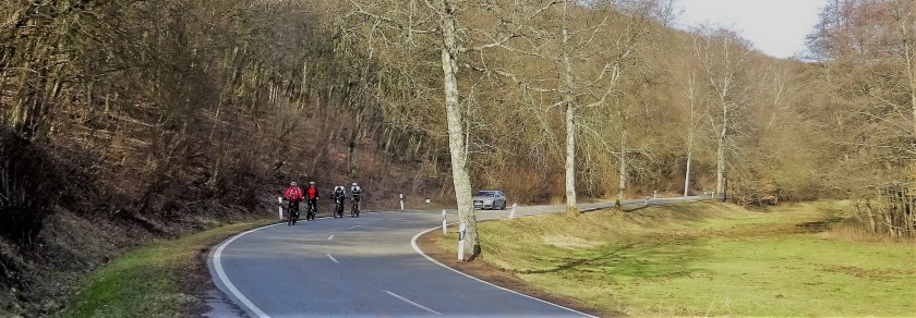 Einige RSFler an der Breck (mit gebührendem Abstand). Meine erste Tour im Jahr, hätte nicht soweit führen müssen, dann wäre ich zum Ende der Runde nicht so ausgepowert gewesen. Trocken sollte die Fahrt werden, weshalb fast nur auf geteerten Geläuf gefahren wurde. An der Staumauer hielten wir kurz zum verschnaufen, bevor die schnelle fahrt weiterging. Den Peterberg hoch verließen mich die Kräfte (hatte die Trinkflasche zu Hause gelassen) und Motormäßig musste ich eine Stufe zuschalten. Aber was bin ich denn hier am mosern, einer war dabei ganz ohne Akku und der musste das Tempo und die Strecke auch so mitfahren. Trotz allem war meine erste Tour, schon in Ordnung!