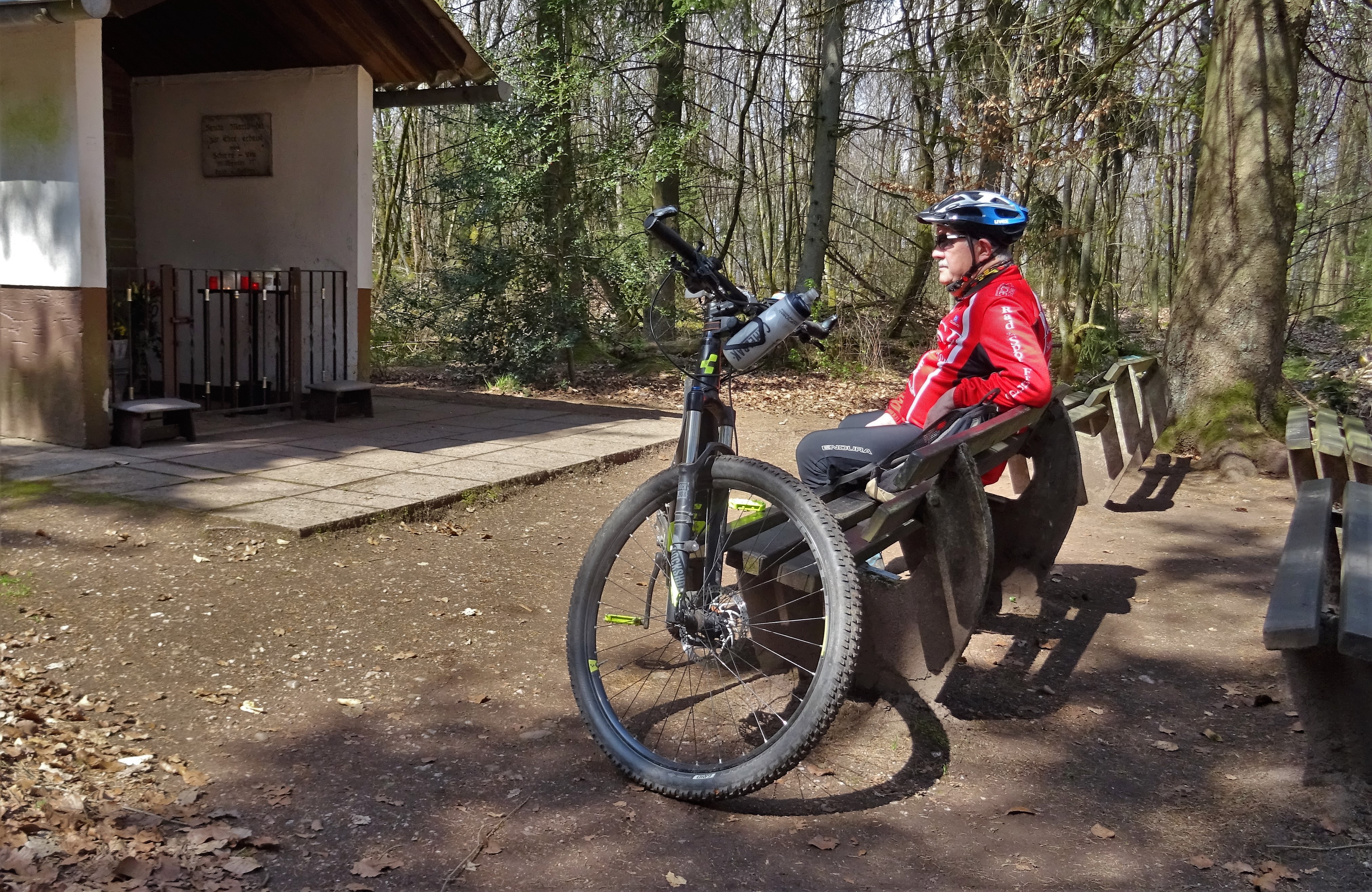 Eigentlich wollte ich mit den Freunden eine Tour machen, sie hätten nur die Richtung nach Berschweiler einschlagen müssen, aber der neue Geid ( Wolfgang) hatte andere Pläne. So bin ich dann alleine los. Erstmal musste ich dem Sohn die Reste von unserem Mittagessen (Gefüllte mit Specksosse) nach Berschweiler bringen, aber mit dem kleinen Umweg über den Mäbinger Segel Flugplatz. Weiter ging`s dann zum Frankenbacher Hof, Richtung Odenborn, aber vorher rechts runter zum Loss in Dirmingen und auf der anderen Seite die Hard wieder hoch. Im Dirminger Wald fuhr ich zur Wassertretanlage, wo dann ein Gespräch mit drei Frauen aus Eppelborn über das kneipen geführt wurde und dass man nach dem Wassertreten die Füße nicht mit Tüchern abtrocknen soll.