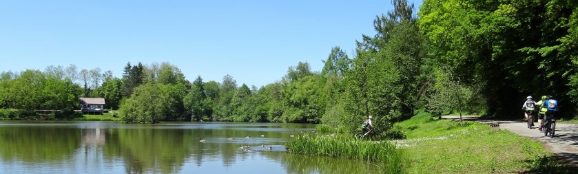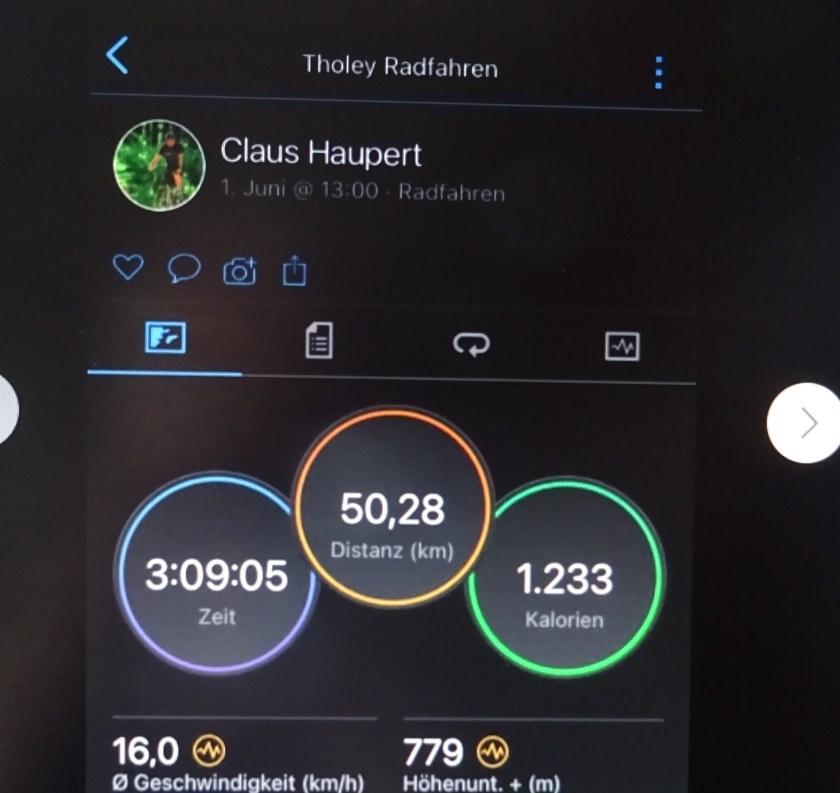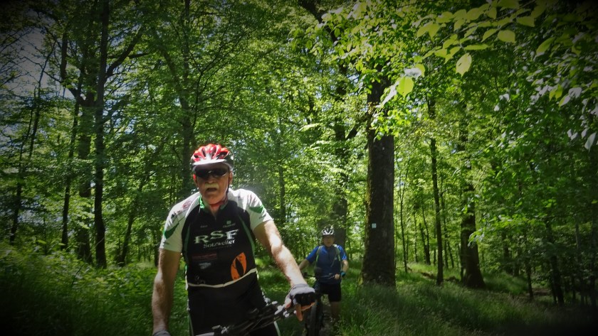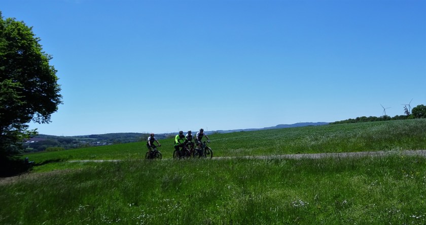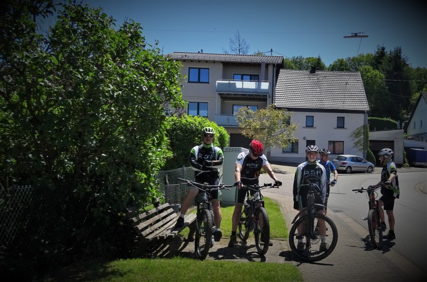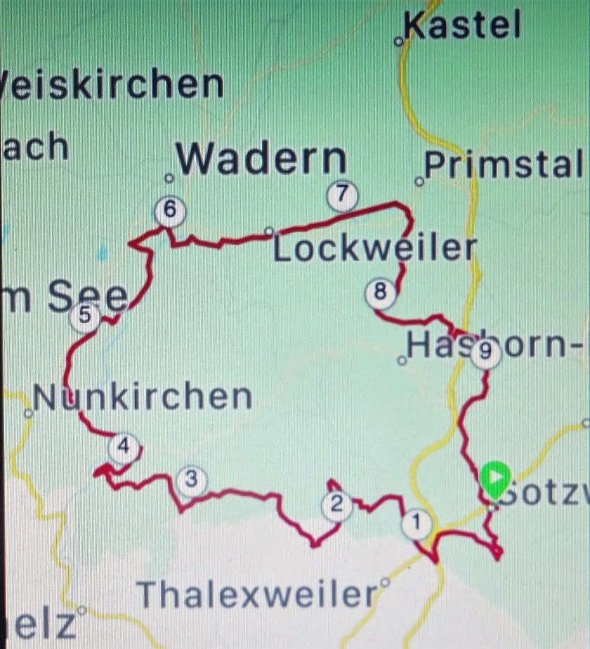 Die Strecke sollte wieder etwas besonderes sein, da unser Kamerad Claus aus Körprich wieder mal mitgefahren ist. Los, wie sooft in den E-wald an Steinbach vorbei nach Höchsten und auf den Erzgräberweg. Schon an der Birg vorbei, hoppla mitten im Wald war die Fahrt zu Ende, Holzfällarbeiten, so gezwungen wieder zurück, fast zum Hoxfelsen und von der anderen Seite unterhalb der Birg, nach Limbach. Auf dem Weg des Wassers wollte Wolfgang über einen sehr dicken (10-12 CM) Baumstamm drüber lupfen, das Bike flog höher als er, ist aber nichts schlimmes passiert. Hinter Überlosheim machten wir an der schönen Weiheranlage unsere Pause. Auf dem Trail nach Bardenbach ist immer noch einiges an umgestürzten Bäumen zu umfahren. Am Bardenbacher Sportplatz hat der 4 Uhr Fahrer die Gruppe verlassen und ist alleine auf dem schnellsten Weg nach Hause. Die Gruppe fuhr auf dem Felsenpfad bis kurz vor Noswendel und dann sind auch wir nach Dagstuhl, an Butnich vorbei auf die Trasse nach Primstal. Die Wiesbach hoch hielt uns dann noch Benno`s Kamerad Elmar auf, bevor wir uns losreissen konnten und nach Hasborn, auf den J.K.Weg und zur Sombach fuhren. Zuhause waren wir höchstens 15 Minuten später als der 4.U. Fahrer.