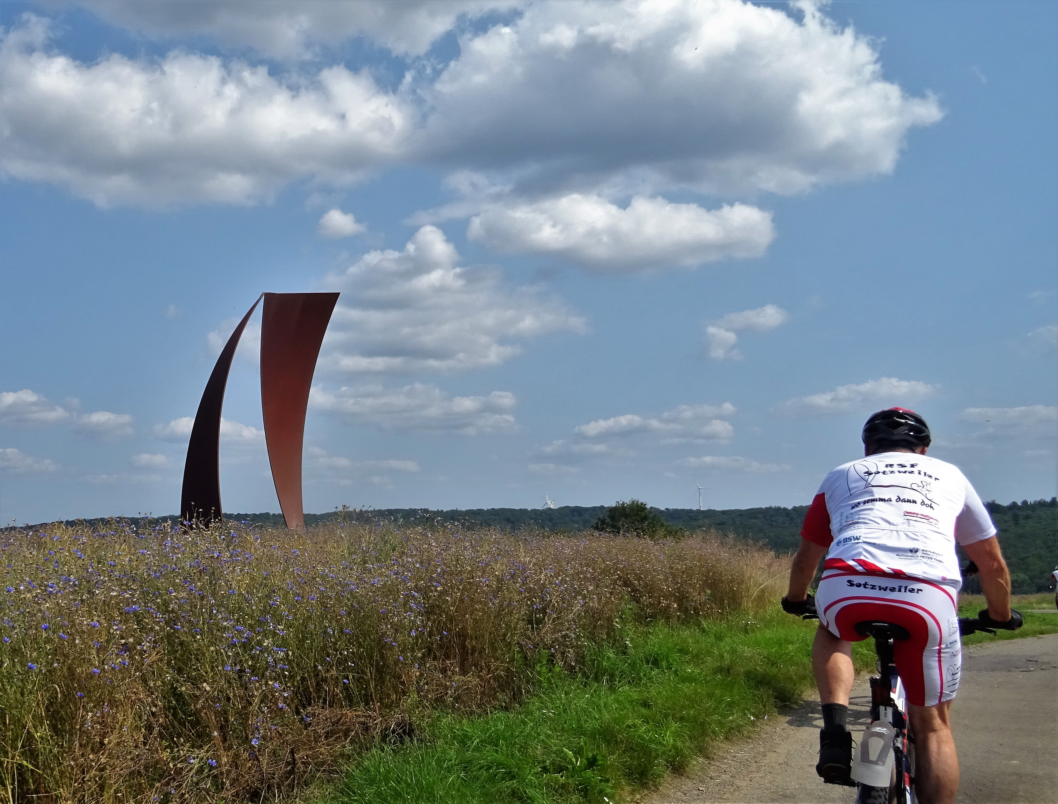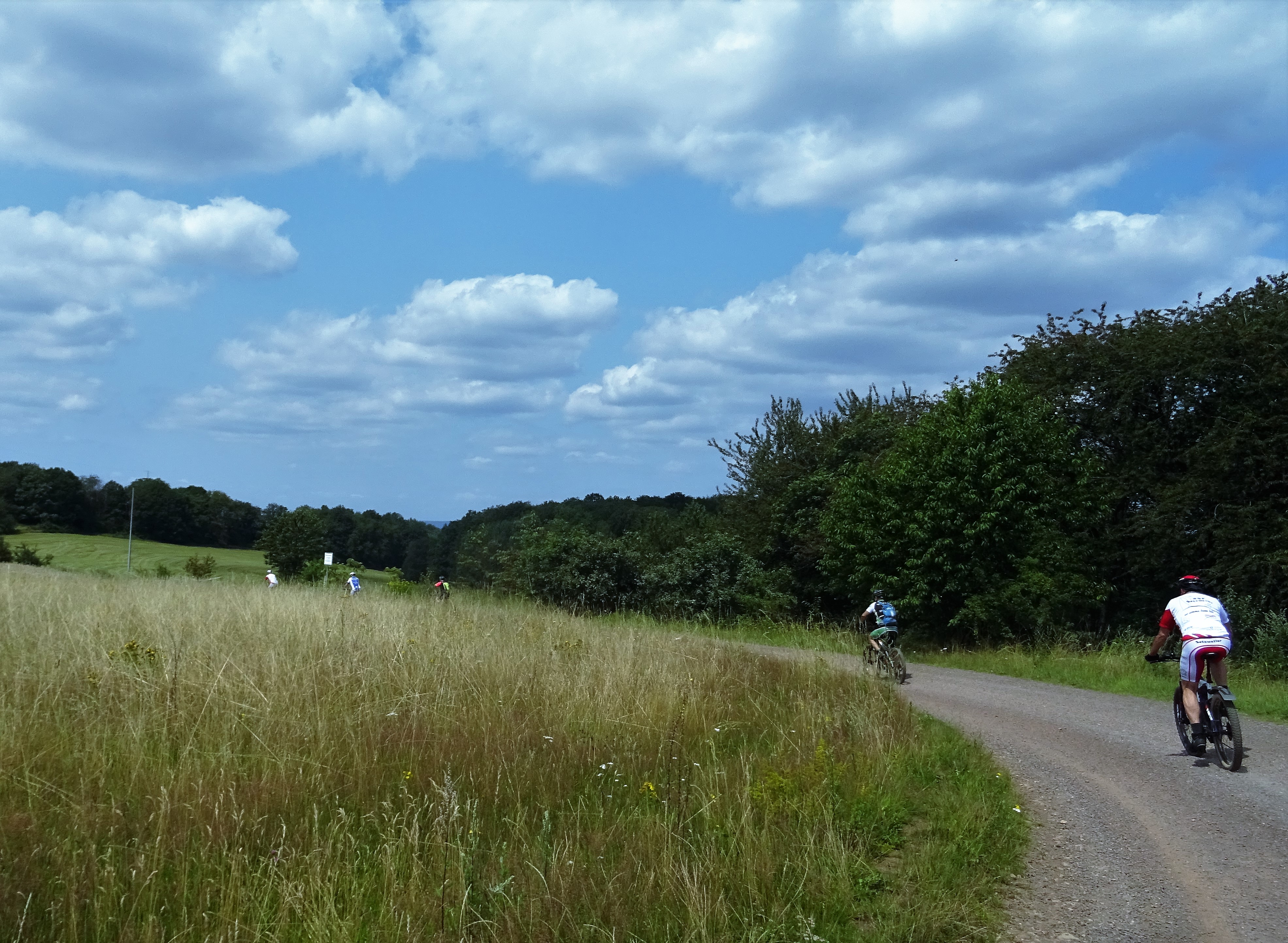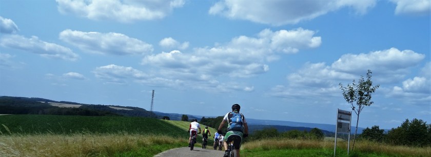 Micky war dabei und unser Guide strengte sich besonders an, vor allem mit Trails, war aber auch gut zu fahren über Höchsten, mit dem Erzgräberweg, rund um die Birg, bis Limbach. Hinter dem Hundeplatz der nächste schöne steinige Weg an Prims und Losheimer Bach vorbei durch Überlosheim bis zu dem kleinen Weiher und weiter bis Bardenbach. Wieder an der Prims entlang auf dem Felsenweg bis Noswendel. Hier am See machten wir Pause, fuhren anschließend halb um den See und zurück bis Dagstuhl und weiter auf der ehemaligen Bahntrasse bis Krettnich. An der Wiesbach entlang hoch bis Hasborn in flottem Tempo und über den Joh. Kühn Weg Richtung Dörsdorf. Zum Abschluss am Heiligen Häuschen und Wortsegel vorbei und das war es mit dieser sehr schönen Tour.