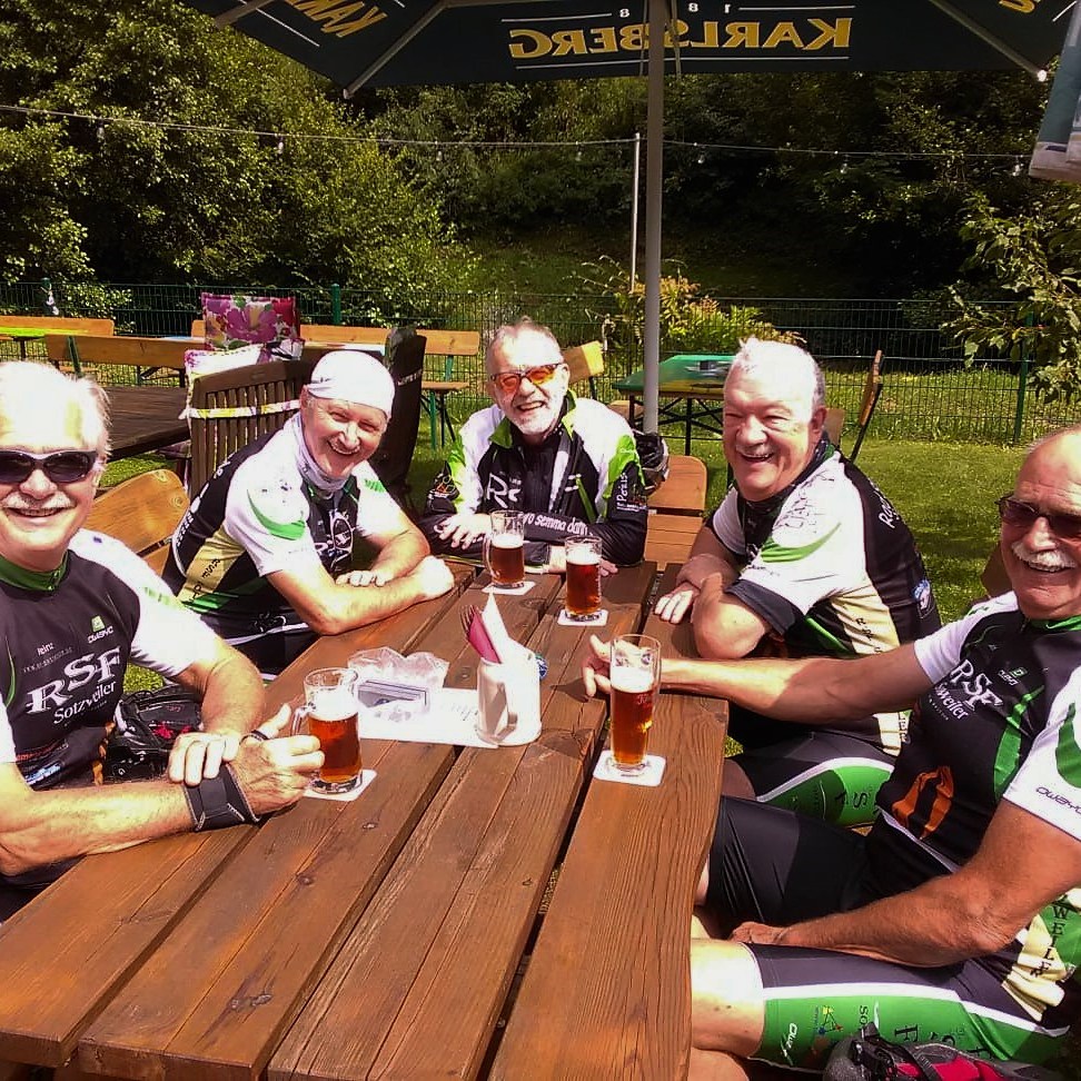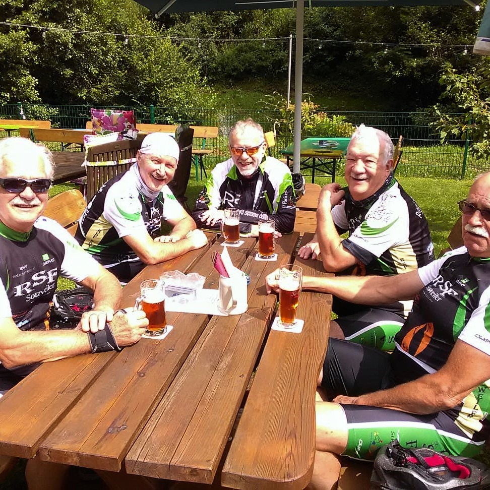 Einige Tische mit Biker und Wanderer (viele Bekannte) waren schon besetzt, aber auch für uns war noch Platz. Nach einem guten Bier und für den einen oder anderen eine Kleinigkeit zum Essen machten wir uns auf den Heimweg. Alles in allem eine sehr gelungene Tour.