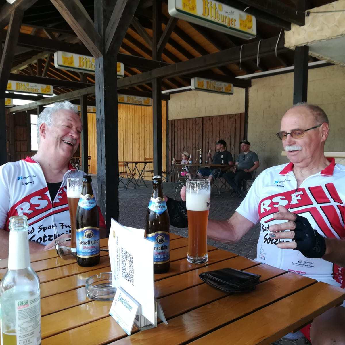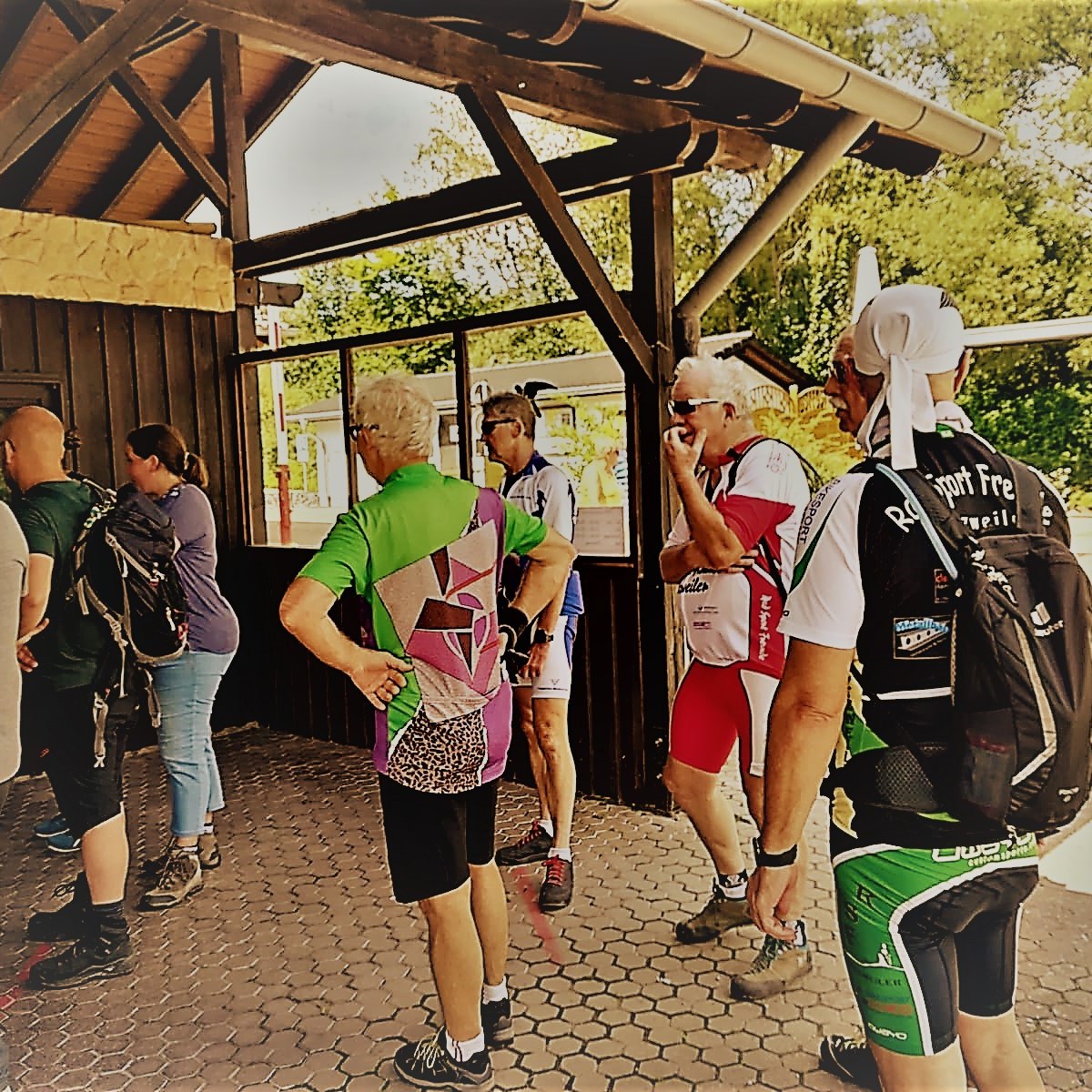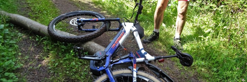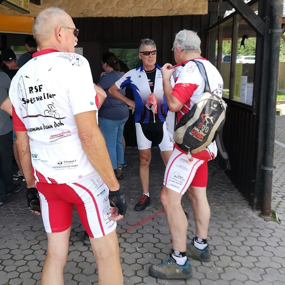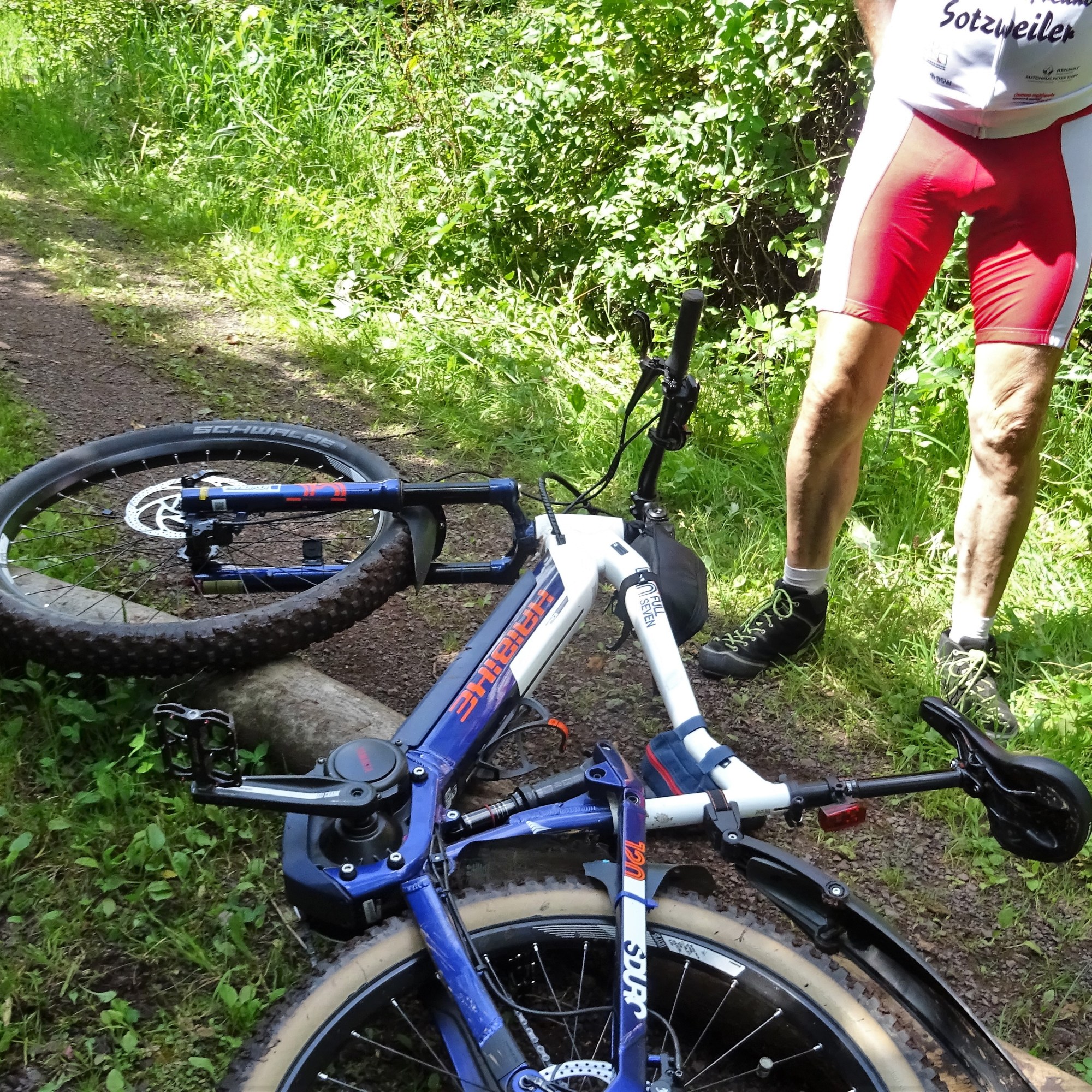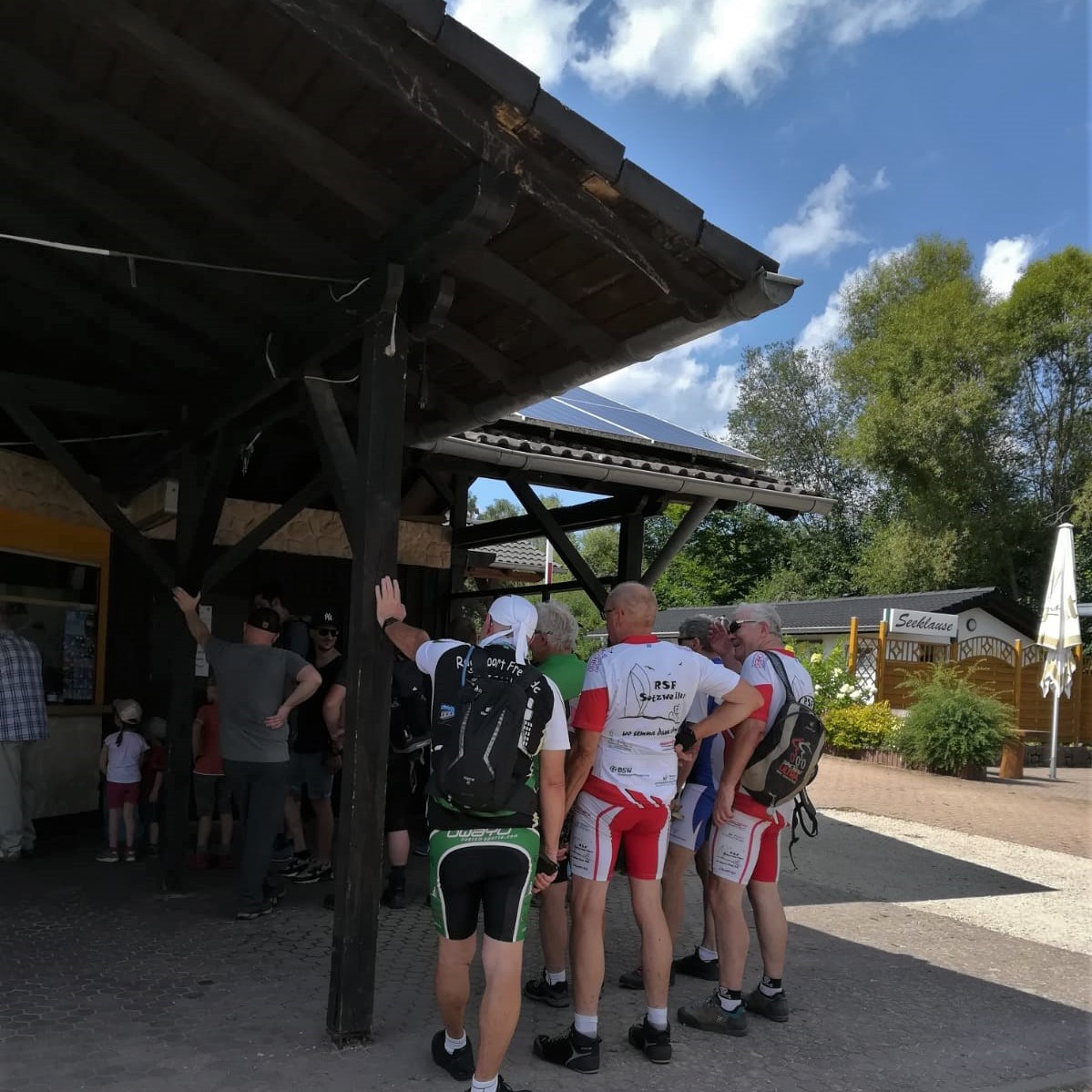 Den Hinweg nach Höchsten ist Andreas noch mitgefahren, obwohl er seine Runde schon hinter sich hatte. Zum Erzgräberweg hat er uns alleine weiterfahren lassen. Die letzten Touren auf dem Weg Richtung Limbach, ging es immer wieder auf den klasse Trail, um die Birg herum. Auf dem Pfad an der Prims und Losheimer Bach vorbei liegen wieder einige umgestürzte Bäume, wo man drüber und drunter durch klettern muss. Von dem kleinen Weiher bei Überlosheim nach Bardenbach ist zwar wieder geräumt, aber so richtig flüssig fahren ist auch da nicht, selbst auf dem Felsenpfad kommt man nicht so gut voran, durch den Regen die letzten Wochen ist alles ziemlich aufgeweicht und dann hat Freund Klaus versucht einen dicken Stamm (10 cm) zu überspringen und hatte dann Bodenkontakt, ist aber gut ausgegangen, für Rad und Reiter. Am See dann unsere Pause, es ist Ferienzeit, so mussten wir eine längere Zeit am Kiosk warten bis wir was? zu trinken bekamen. Den Rückweg ohne viel Schnickschnack nur Teer und Schotter, nach Dagstuhl, Lockweiler bis Krettnich, diesmal nicht die Wiesbach hoch sondern an der Autobahn vorbei zur Sombach, Leitzweiler und Lach und durch die Niederwies nach Hause.