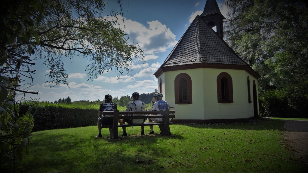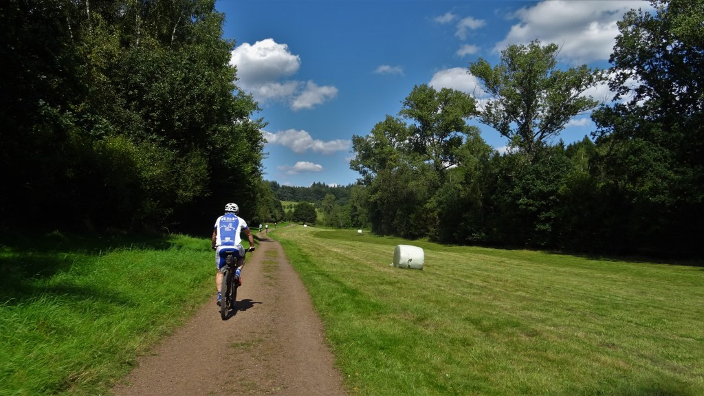 Unser heutiger Guido war wieder mal Heinz, er hat seine Sache gut gemacht, die Strecke etwas anders als üblich, Leitzweiler, den Hühnerberg hoch nach Hasborn an der Seiters vorbei zum Hanacker, bis zur Imsbach zum Katharinenwald, und um die Nahequelle herum, den Peterberg, hoch. An der Kapelle machten wir unsere Pause bevor wir zu den Windrädern und dann runter bis Sötern fuhren. Hier sind wir ein Stück bis Gonnesweiler auf der im Bau befindlichen Bahntrasse gefahren. Anschließend zur Elsenberger und Noh Mühle am Oberthaler Bruch vorbei Richtung Kapellenwiese, aber vorher links abgebogen, oberhalb vom Schesserling nach Oberthal. Auf der Trasse, bis Tholey ging es mit flottem Tempo, weiter auf der Hohen Straße, zurück nach Sotzweiler.