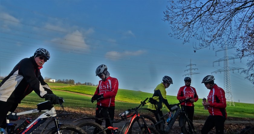 … sollte diese Tour werden und da keiner einen Vorschlag machte sagte ich nur mal „Humes“. War zwar wieder nicht jedem recht, aber trotzdem sind alle hinter mir her gefahren. Auf der Schwann hat uns Holzfällarbeit ausgebremst und so sind wir zum Exweiler Weiher und dann hoch zum Finkenrech, kurzes Stück Dirminger Strasse und dann runter nach Berschweiler. Hinter dem Frankenbacher Hof den Hügel rauf und am Dörrwald vorbei zum Loss in Dirmingen. Um noch einige Höhenmeter zu machen bin ich auf der anderen Dorfstrassenseite die Hard hoch auf den Gro0en Elmersberg.