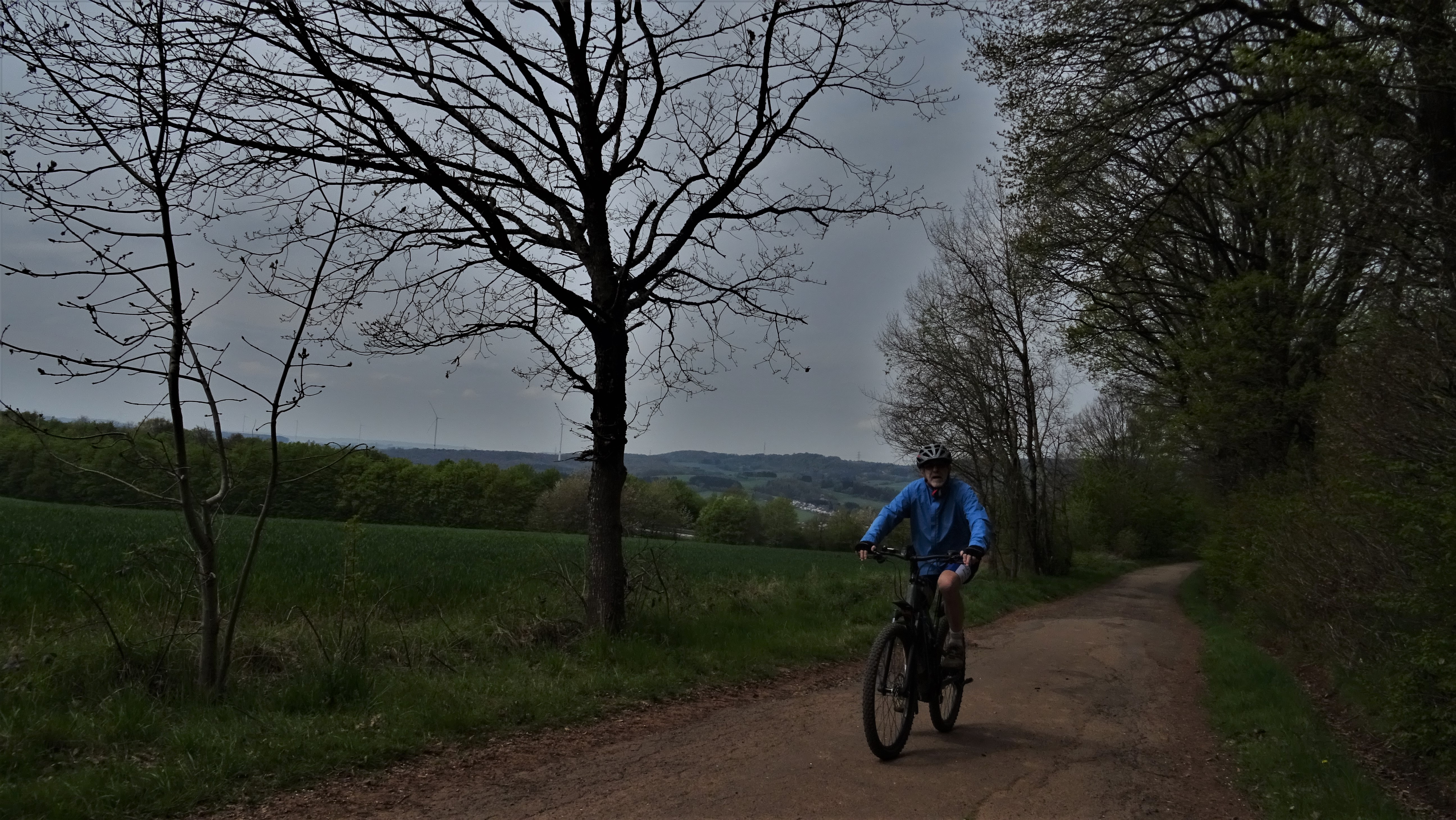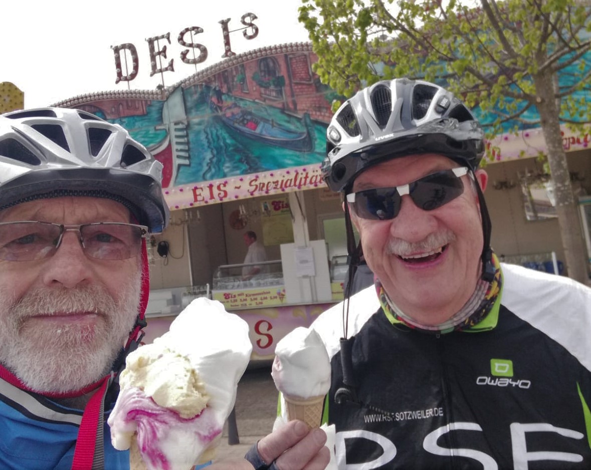 …nur zu zweit, da kann ich die tollsten Touren fahren und Erich E.4. hat es toll gefunden. Wo sollen wir nur hin, fahr doch in die Humes zum Eis schlecken, warum auch nicht. Strecke wie oben beschrieben, im Dirminger Wald sind wir ein paar Trails rauf gefahren, bevor ich die Hard runter bin und rechts ab in den Schachen und nach Humes, den Steinacker runter ins Dorf. Das Eismännchen war wie die letzten Jahre wieder vor Ort und für 2 Euro bekommst du das beste Kirmes Eis (weit und breit). Den Rückweg fuhren wir durch den Egge zum Uchtelfanger wald runter nach Wustweiler, beim Geggo vorbei Richtung Segelflugplatz und unspektakulär an der Hundshütt vorbei nach Berschweiler und auf die Hohe Strasse, den BS Steig runter auf den Schrödersberg.