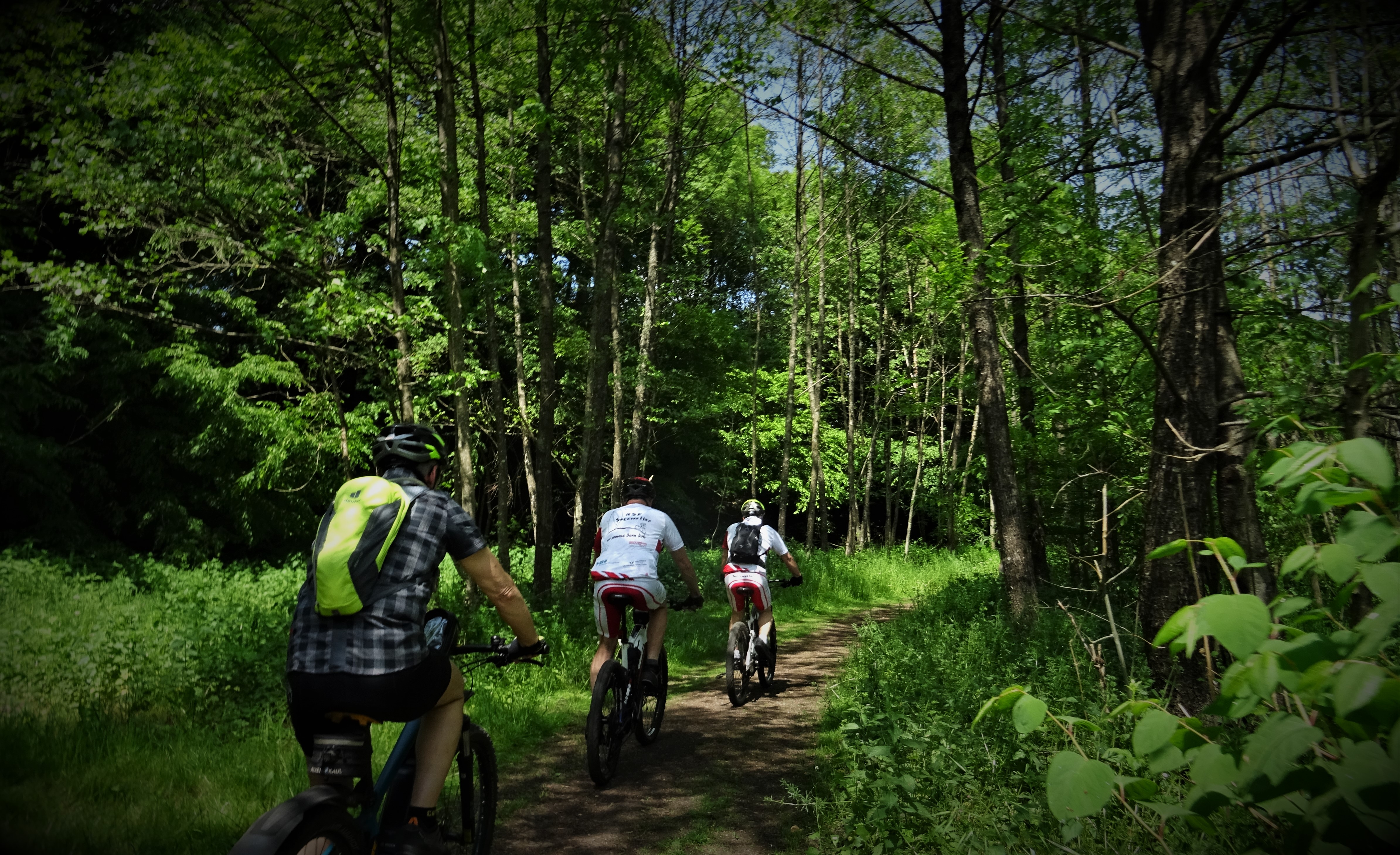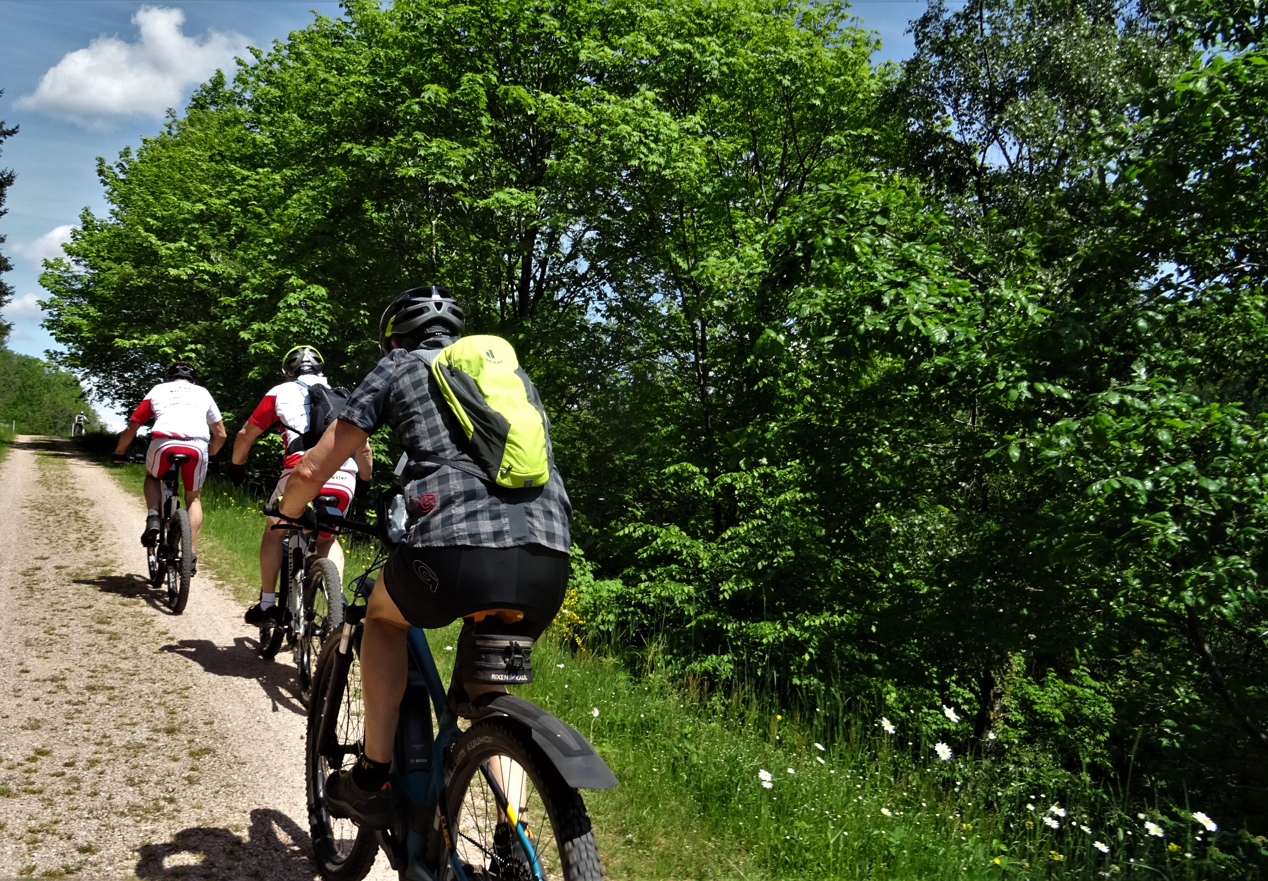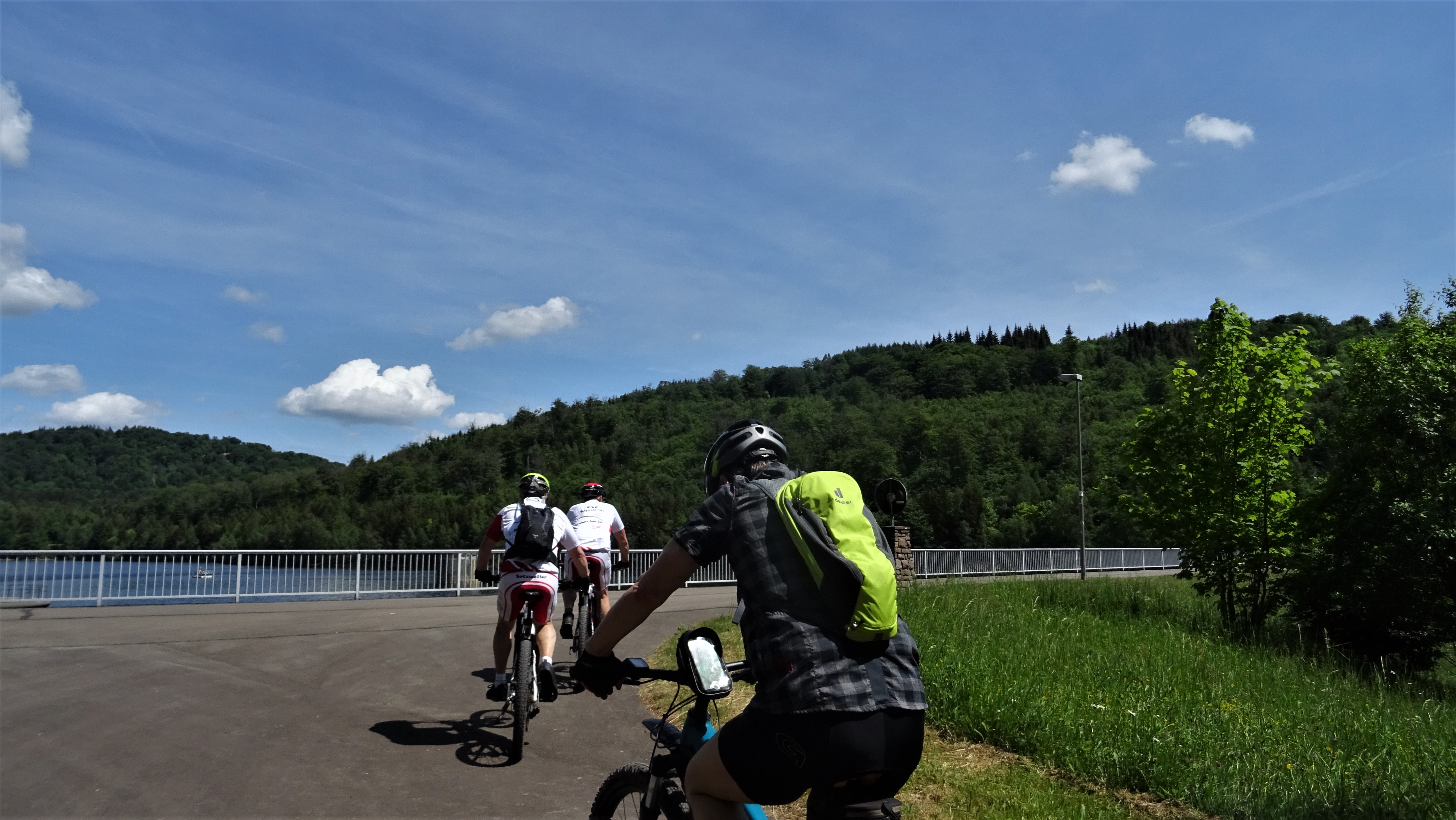 Eigentlich ist das eine Standard Tour, aber jetzt im Sommer, wo die Trails abgetrocknet sind, kannst du auch wieder vermehrt Trails fahren, was so einer Fahrt, das gewisse etwas gibt. Oberhalb der Staumauer wieder eine kurzr Pause, bevor es am Hunnenring vorbei nach Schwarzenbach und Richtung Peterberg ging. In Bosen hat der Zeitnehmer die Truppe verlassen, so sind wir nur noch zu viert, an der Elzenberger Mühle vorbei nach Selbach und zur Johann Adam Mühle, wo der Flüssigkeitsverlust ausgeglichen wurde. Um nicht immer den gleichen Weg zurück zu fahren bin ich hinter der Mühle über eine Wiese nach Theley, an der Realschule vorbei zum Brühlpark. Weiter zum Schaumberg, aber auf halber Strecke dann runter zum Hasenberg und durch die Lach und Niederwies nach Hause.