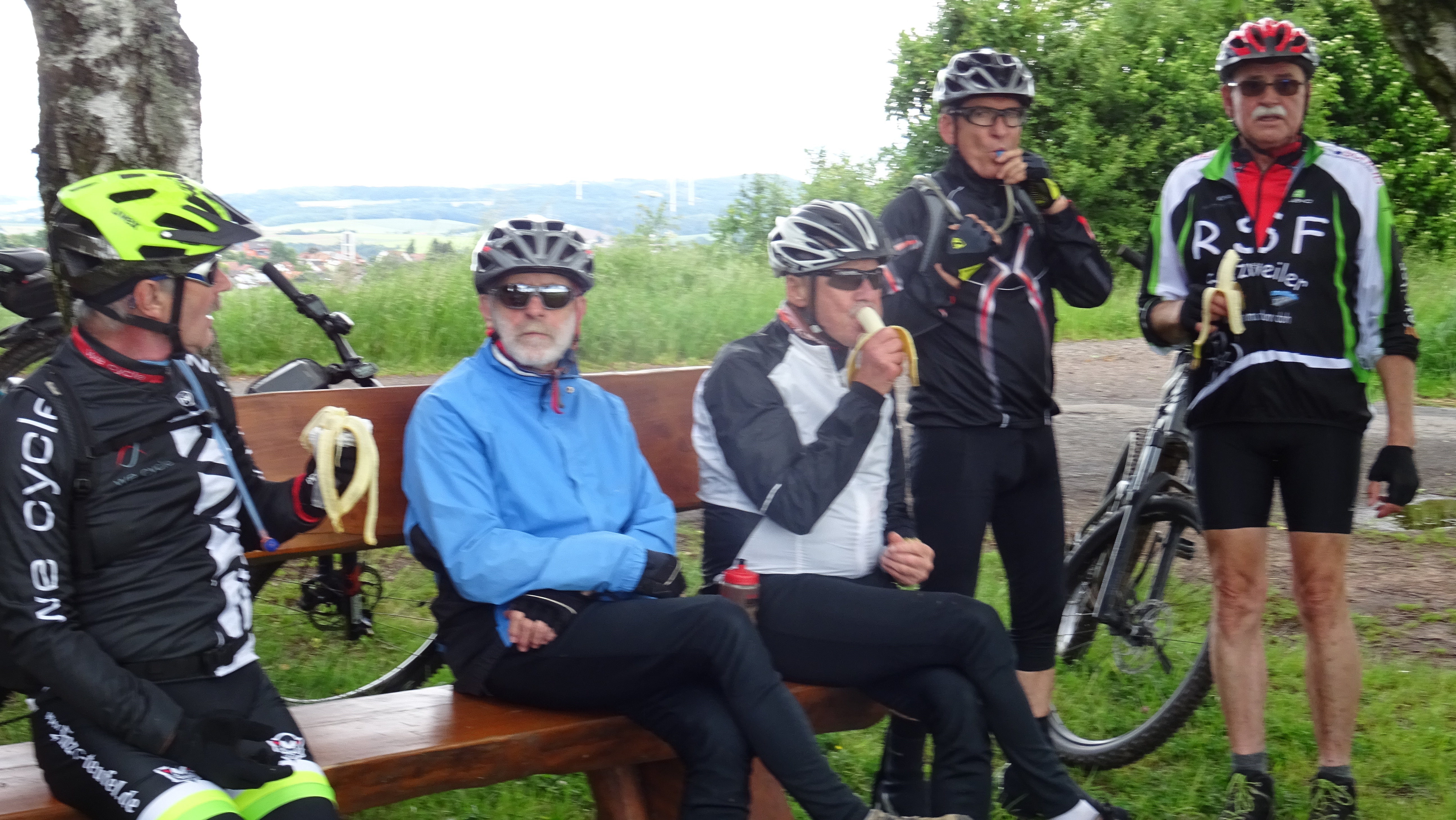 …wurde es nicht, (Zeitmäßig um „vier“ müssen wir Zuhause sein), haben wir vor dem Nordschacht die Tour abgebrochen, sind zum Hoxberg und über Knorscht nach Primsweiler in den Moritzwald. Zwischen Landsweiler und Falscheid haben wir unsere Pause gemacht. Mit flottem Tempo sind wir über Tanneck nach Niedersaubach und nach Aschbach. Am Friedhof fuhr Kamerad Erich auf schnellstem Weg nach Hause, wir anderen sind zur Homesmühle und nach Steinbach, an der Auitobahnmeisterei vorbei nach Sotzweiler und waren um „zwanzischvorvier“ daheim.