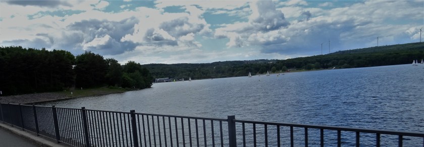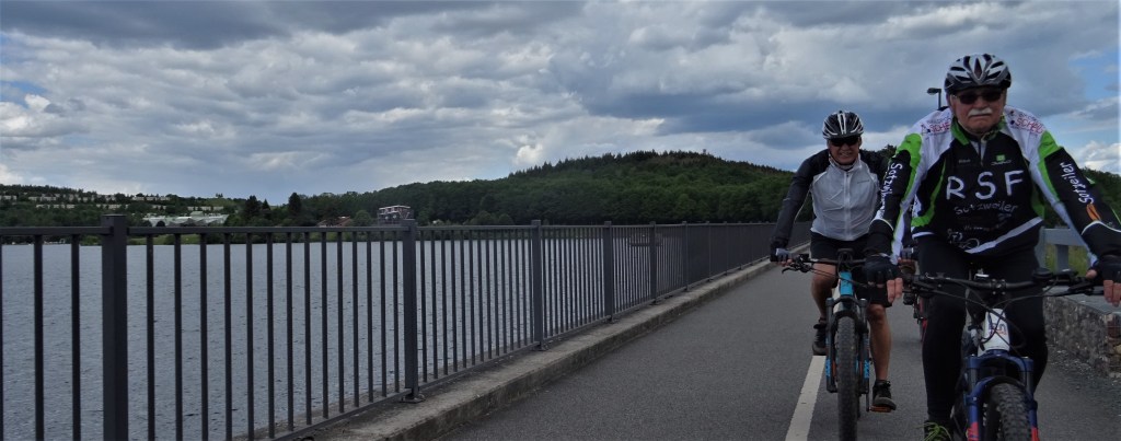 Am Samstag, immerhin mit Sechs Mann, die Standard Tour zum Nonnweiler See, den Hinweg über die Sombach nach Primstal, zum Rehköpfchen, Schleierwald und Kastel. An der Staumauer machten wir wie immer eine kurze Rast. Den Rückweg heuer nicht über Schwarzenbach, sondern nach Eisen, mit einem Abstecher zum Golfplatz und dann auf der neuen Bahntrasse bis Gonnesweiler.