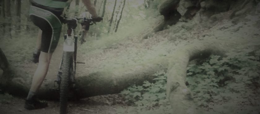 …auf dieser schönen Runde. Auf der Theler Hell , an der kleinen Treppe wollte er noch Brombeeren mitnehmen, aber ausser Dornen am Allerwertesten gab es nichts zu holen. Den schwarzen Stock haben wir von der anderen Seite angefahren und sind dann am Waldstadion vorbei auf den Wurzeltrail mit Zähneklappern, zur J.A. Mühle.