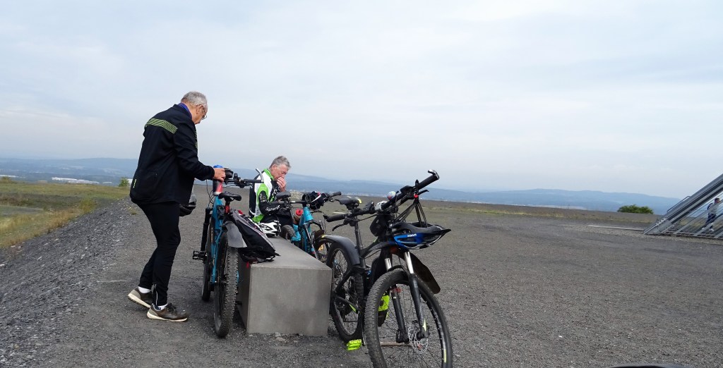 Ohne uns zu-ver-fahren, ausser an den Tennisplätzen eine Runde (gewollt) auf der Buckelpiste. Das Heileit auf der Tour ist der Aufstieg zum Polygon und hier muss ich den Hut ziehen, für Armin, der einzige der ohne Elektro Unterstützung hochfahren muss. Schöne Aussicht eine Banane und einige Fotos später machten wir uns vom Acker zur Kaffee-kisch der Grube Duhamel. Gutes Essen, guter Preis und einen Balken Ladung für den Akku, machten wir uns auf den Heimweg, durch Lautern und Wellingen, hier kennen wir uns mittlerweile aus wie dehemm. Auf dem Primsradweg hinter Bilsdorf und Körprich fuhren wir Richtung Lebach und nach Sotzweiler. Ist immer wieder eine schöne Tour für einen Samstag.