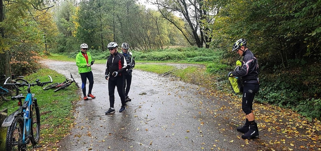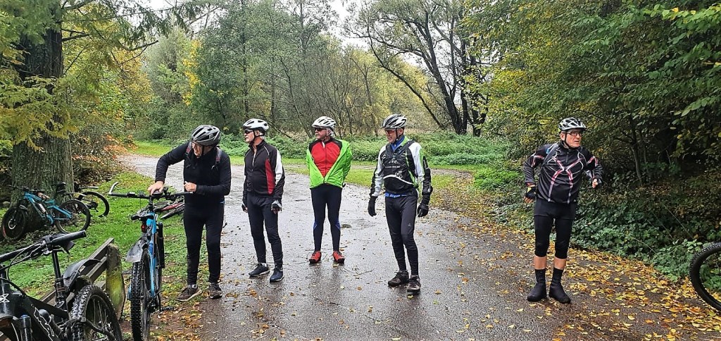 Steuermann ist der, der die Richtung vorgibt und das war heute Benno. Acht Biker ist für eine Wochentour mit durchwachsener Wettervorhersage recht passabel. Dabei fehlten noch mindestens zwei Stammkräfte, die aber eine schriftliche Entschuldigung vorlegen konnten. Und so ging es, unter teilweiser Berücksichtigung des Dauerregens vom Wochenende, auf eine unserer Standardstrecken mit einer zusätzlichen Schleife über Auschet. Die Pause wurde am Überlosheimer Weiher eingelegt. Keine Kanada- oder Nilgänse diesmal zu sehen, die waren bestimmt zu einem Tagesausflug zum Losheimer See unterwegs. Obwohl wir bei der Anfahrt zum Erzgräberweg eine gute Sicht auf die Wolkendecke hatten und sich diese eher im Raum Lebach bis Schmelz ausdehnte, erwischte es uns dann doch mit ein paar Tripsen im Raum Bardenbach/Noswendel. So musste wohl jeder zuhause den Wasserschlauch anschließen, um das Bike vom größten Dreck zu befreien.