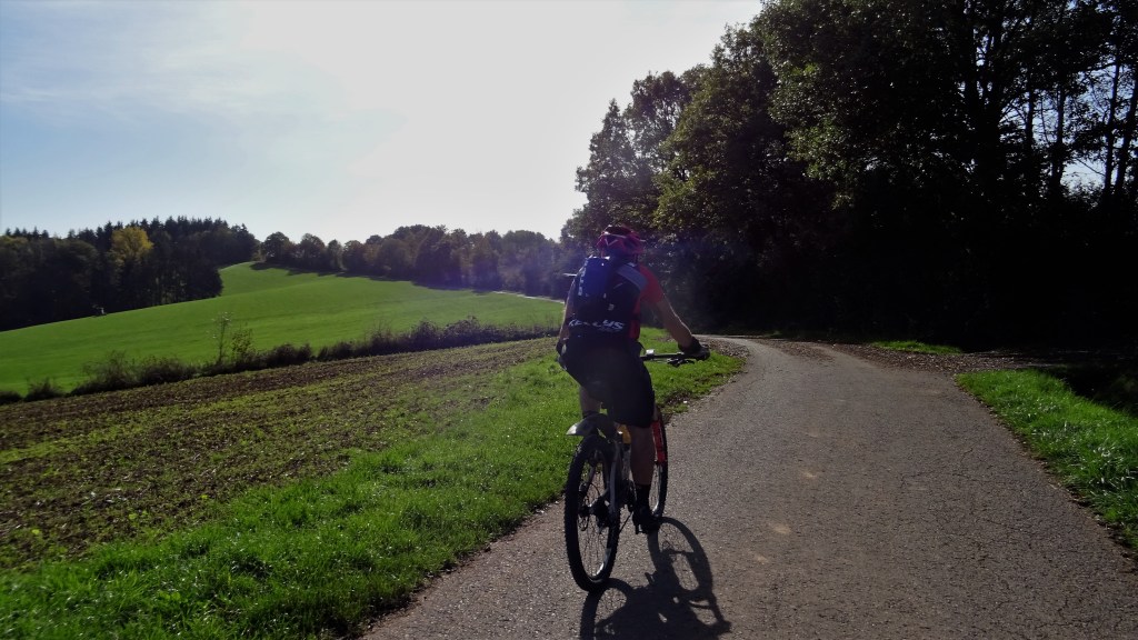 Guide Wolfgang führte die sieben Mann mit seinem Navi zum Itzenplitzer Weiher. Mittlerweile ist es eine unserer Standart Touren und so kommen wir ohne uns zu verheinzen zu unserem Ziel. Eigentlich eine schöne Strecke, das einzige Manko ohne auch nur in Erwägung zu ziehen, eine Einkehr (Biergarten ETC) gibt`s nicht. Einzige Ausnahme ist nur die Bananen Pause. Vom Itzenplitzer Weiher, fast nur Trails und Waldwege zur Göttelborner Bergehalde. Da mein Akku nicht mehr soviel Leistung hat, hab ich mir den Anstieg bis zum Gipfelkreuz erspart und bin auf halber Höhe zur Kaffekisch, die aber leider geschlossen war. Den Rückweg am Absinkweiher Hahnwies vorbei, aber leider keine Nackedeis am Weiher, es ist nicht mehr so warm zum Sonnenbaden. An der Kartbahn vorbei in die Humes und im Dirmingerwald auf den flowigen Trail runter, bis zum Rübenstück in Eppelborn. An der LFS entlang, durchs Klingelfloss zum Finkenrech, hier haben der Sepp, der Josef, der Jupp und ich die Truppe verlassen und sind auf der Hohen Strasse nach Hause.