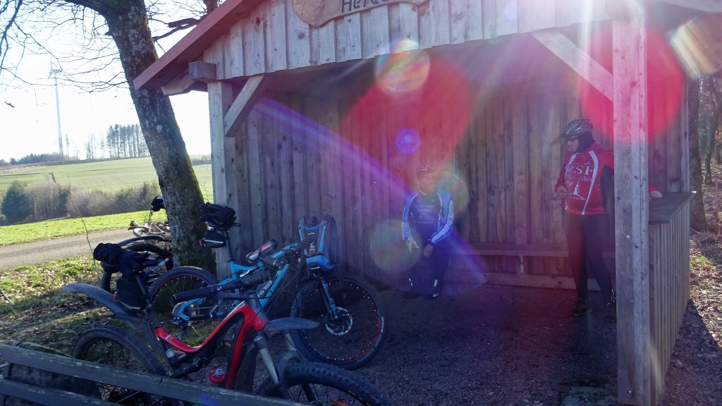 Wenn so eine Party angekündigt wird, kommen sie aus allen Löchern. Elf Mann waren zum Start an der Bregg. In die Humes wollten sie nicht fahren, so hat Armin (ohne Motor) die Richtung angegeben und immer wieder Steilstücke eingebaut, zum trainieren für den Black Forest Marathon im Schwarzwald. Und immer wieder musste ich den Motor auf kleinster Stufe fahren, da mein Reparierter Akku nicht voll aufgeladen war. Ab dem Römerhof bin ich dann alleine iwwa Selbach zur Imsbach nach Leitzweiler und Bergweiler nach Hause. Der Akku hatte am Ende der Tour noch für 2 Kilometer Strom.
