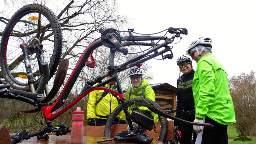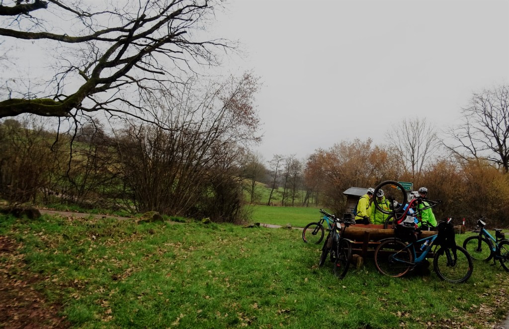 Gleich zu Beginn der Tour meinte Armin, dass er schon Zwei Jahre keinen Platten mehr hatte und wumms, hinter Lebach an der Radtrasse waren die zwei Jahre um.