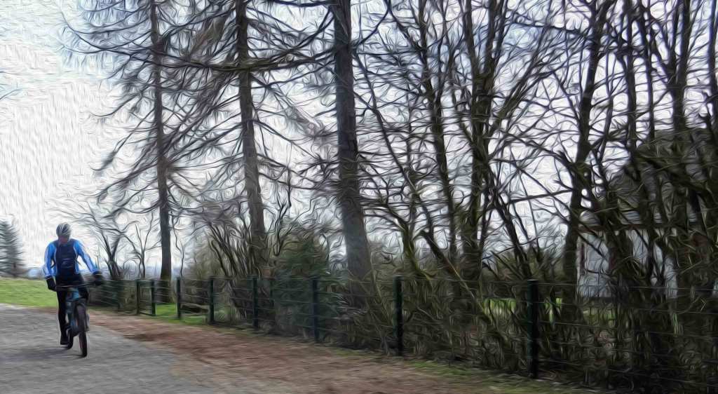 Schon zum zweiten mal im Neuen Jahr, dass bei der Anfahrt der schwarze Stock hochgefahren wurde, aber danach wieder auf Altbewährten Wegen nach Primstal und am Ortseingang die erste Abzweigung den Peterberg hoch bis zur Kapelle. Bei den Windkraftanlagen sind wir nicht nach Eckelhausen, sondern links den Berg runter nach Sötern, bis Türkismühle und wieder zurück zum Bostalsee. Auf der Neuen Trasse in höhe Gonnesweiler machten wir unsere Rast. Nohmühle, Selbach , Imsbach und wieder Leitzweiler waren die letzten kilometer dieser schönen Tour.