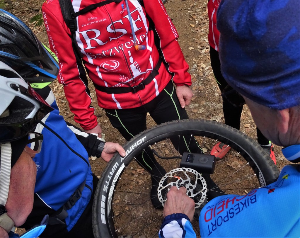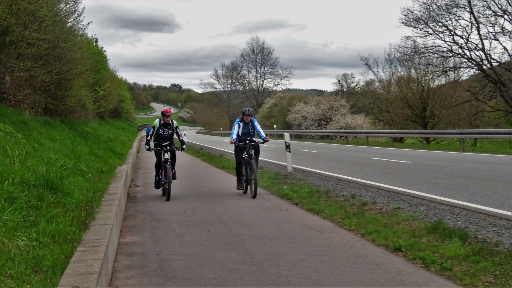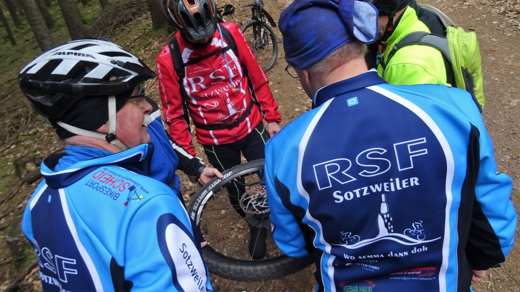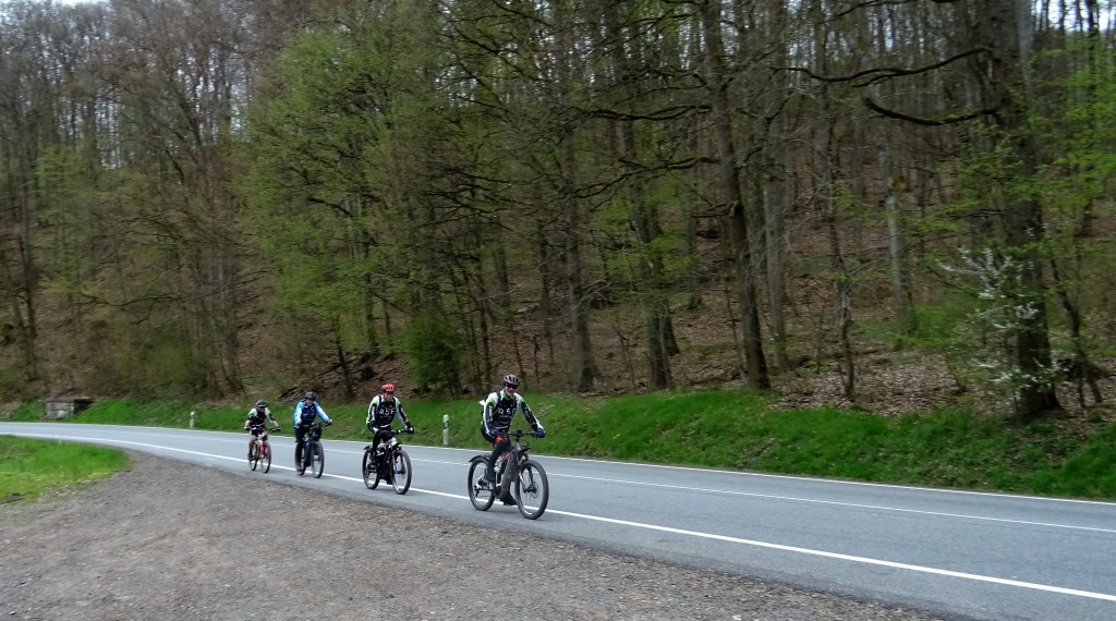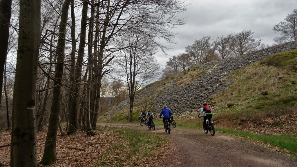 Ich weiß garnicht wer den Guide gab, aber der Hunnenring war gleich als Zwischenstop geplant. In einer schön anzusehenden Landschaft, alles fängt an zu grünen und zu blühen an, fährt es sich toll. Die St.Wendler Mountainbike Strecken waren immer nur kurze Abschnitte. An der Talsperre, wie immer auf der Runde machten wir unsere Pause. Der See ist bis an den Rand gefüllt. Das einzig besondere der Tour war die Streckenlänge, kein Trecker mit Mistwagen, kein Batsch von unten, also eine gelungene Saubertour in Rekordzeit!