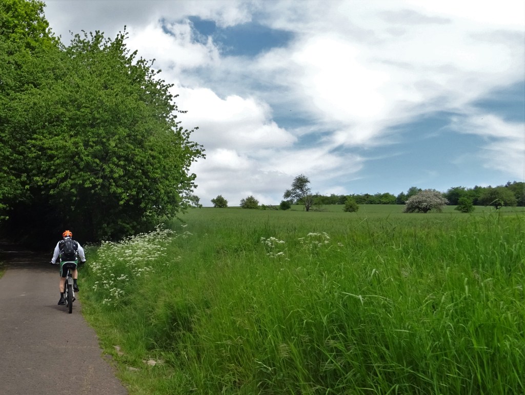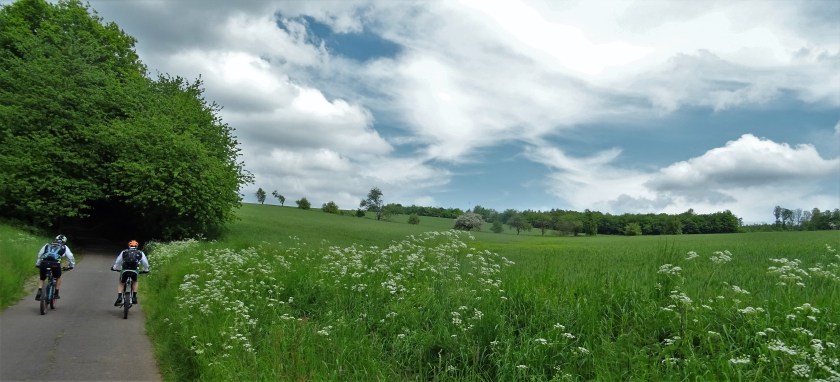 Leider, bei diesem tollen Wetter, nur noch 5 Mann an der Bregg. (Im Winter wenns so richtig kalt war, sind wir oft mit der vollen Mannschaftsstärke gefahren.) Im Gespräch war es, dass Josef noch nie am Spiemont war und so hat der Vize Präsi die Streckenführung an sich gerissen. Zum warmfahren sind wir erstmal durch den Engscheiderwald auf die Dirminger Strasse, am Bauernhof links ab auf ein Teilstück vom Biberpfad und durch das Engstereck richtung Rothenberg. Zwischen Rheinstrasse und Habenichts sind wir den Erschberg runter nach Remmesweiler, an der Kiesmühle und B 41 vorbei nach Oberlinxweiler und scharf abgebogen zum Einstieg des Spiemont. Gefühlte 2 Kilometer gings auf mindestens 15% Steigung den Berg mit schönen Trails rauf, wieder runter und daran Anschließend zum Himmelwald und Wendalinushof. Über den Bosenberg mit dem ein und anderen Trail, an der Kurklinik vorbei nach Urweiler. Die Pause machten wir am Tiefenbachpfad, mit Weitblick ins St.Wendeler Land und Blick zum Schaumberg. Von St.Wendel auf die Trasse nach Tholey haben wir den Schnitt kräftig angehoben. Nachdem Josef uns verliess ist der Rest der Truppe die warm Stubb am Schaumberg vorbei nach Weiler und Sotzweiler.