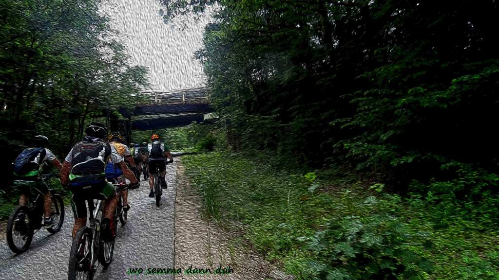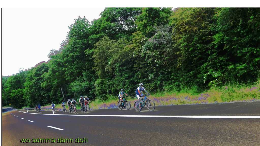 Um keine Zeit zu verlieren wurde mit einem flotten Tempo die weiterfahrt auf der Trasse bis Gonnesweiler und zum Bostalsee aufgenommen. Am Römerhof verließ uns einer der Vieruhrfahrer, aber in Selbach haben wir ihn schon wieder aufgelesen. Imsbach Theley, schwarzer Stock, Lach und Bergweiler waren die letzten Meter dieser schönen Runde.