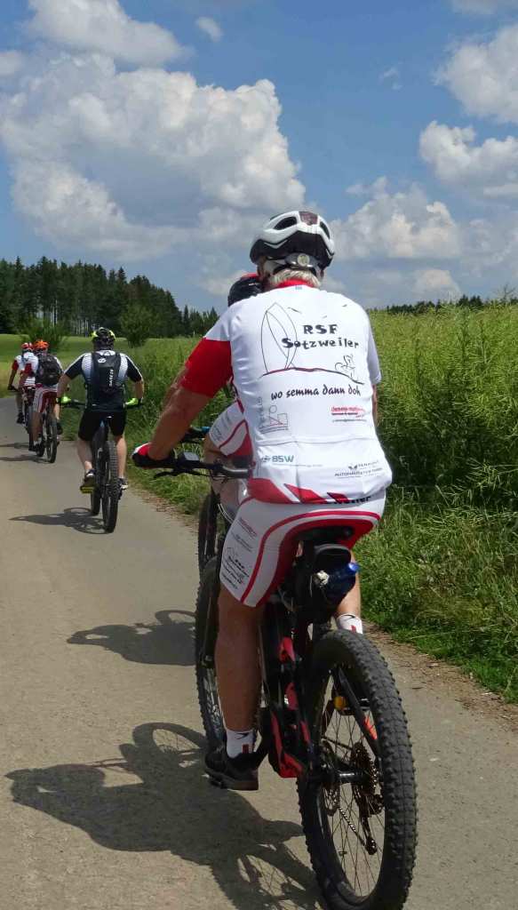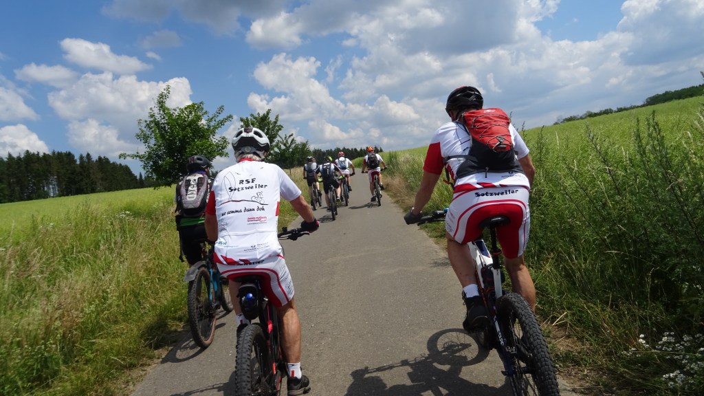 Los ging es nach Bergweiler, wo wir die hälfte der Teilnehmer so nach und nach einsammeln mussten. Leitzweiler, Sombach und an der A1 vorbei bis Primstal, Kastel und weiter nach Nonnweiler hinter der Kirche auf die Neue Trasse nach Bierfeld. Von da an sind wir dann auf die alte Bahntrasse bis Hermeskeil zum Bahnhof, wo eine kurze Rast eingelegt wurde.