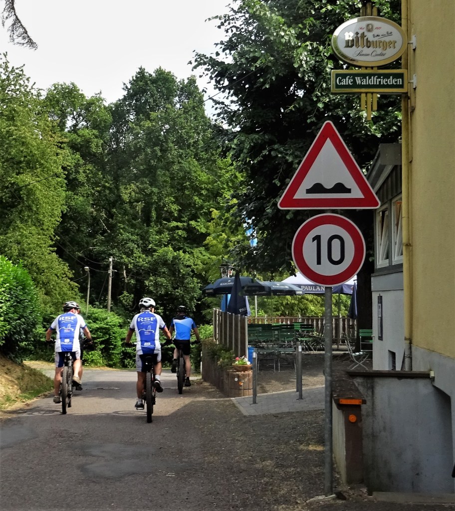 Wie oben schon beschrieben sind wir nach Primsweiler, bis Schmelz und im Cartoon machten wir dann die zweite Rast. Den Rückweg dann ohne Panne über Schattertriesch, nach Limbach und hinter der Birg in den Grossen Horst, auf dem Erzgräberweg zur Fritschenheck und auf Höchsten. Ausgangs Steinbach, Richtung Exweiler fuhr der Guide den Waldweg runter fast bis zum Falk. Um doch noch den ein und anderen Kilometer mehr zu fahren fuhr er noch in den Engscheiderwald bis zum Schrödersberg.