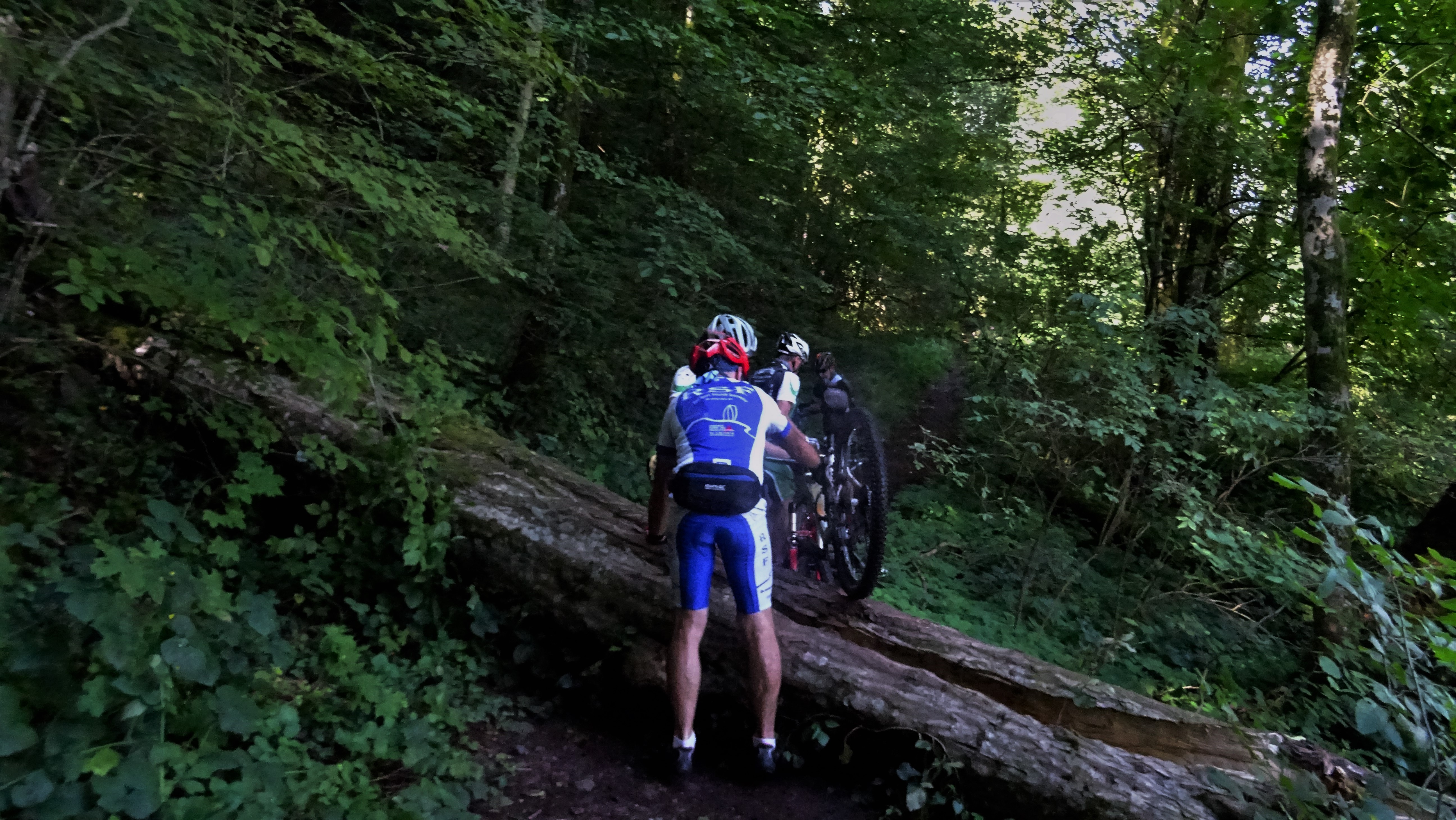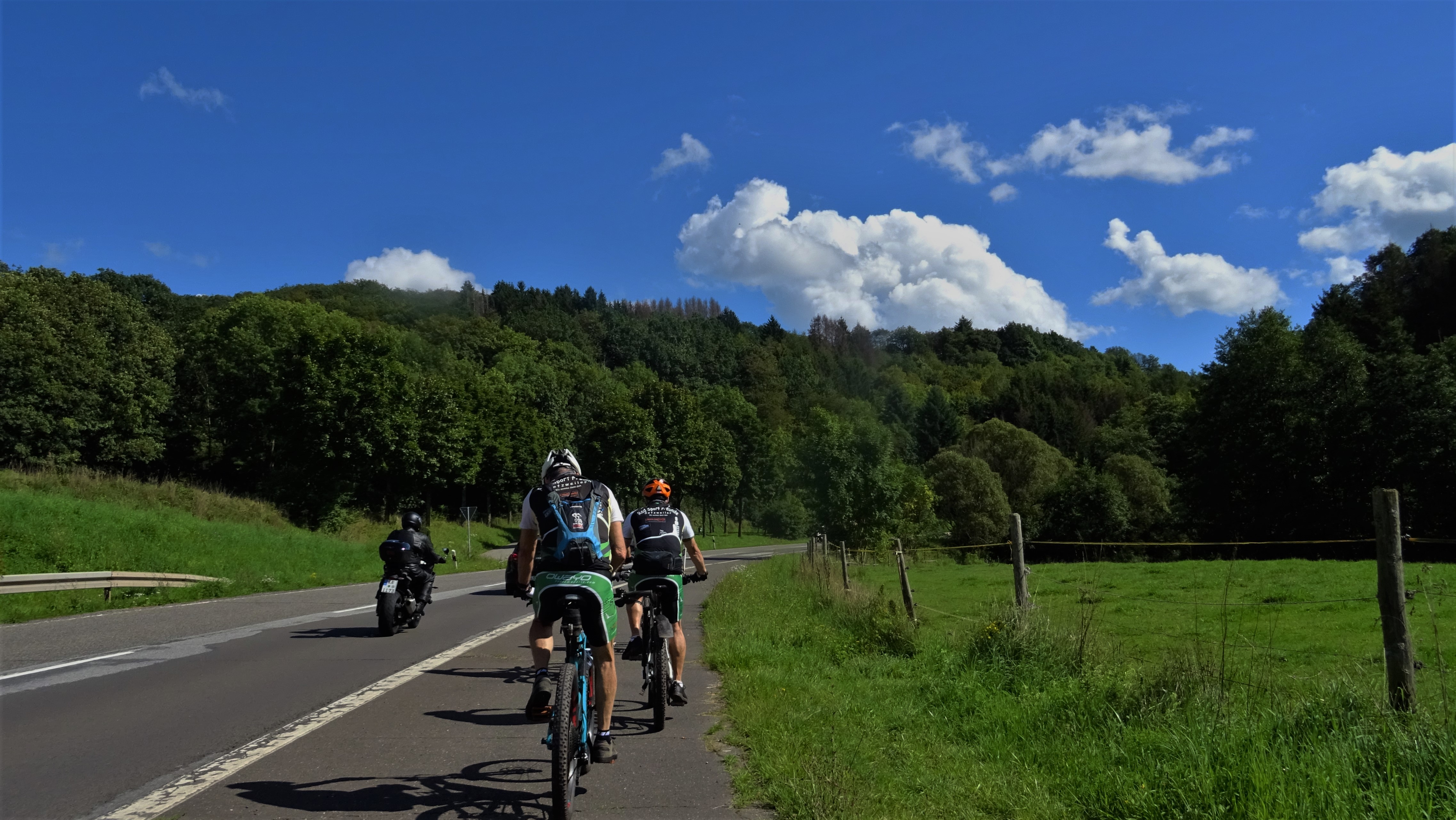 Bei schönstem Wetter, leider nur 5 Mann an an der Bregg, „Nalbach war die Woche schon“ und so kam der Vorschlag nach Noswendel mit einigen Trails gerade recht. Die Langheck, flowig zu fahren, das kurze Stück Weg des Wassers auch, nur der Bardenbacher Felsenweg überraschte mit einem dicken umgefallenen Baum, der nur mit Mühe zu überklettern war. (E Bikes sind schon ziemlich schwer.) Am See dann unsere Bananenpause (ohne Isotonisches Getränk). Bekannte Gesichter kurz noch Freundlichkeiten austauschen und schon wurde der Rückwärtsgang eingelegt. Wadern, Krettnich Theley, alles in einem Rutsch, da wurde der Schnitt kräftig angehoben und es war nicht einmal Vier Uhr, da waren wir in Sotzweiler.