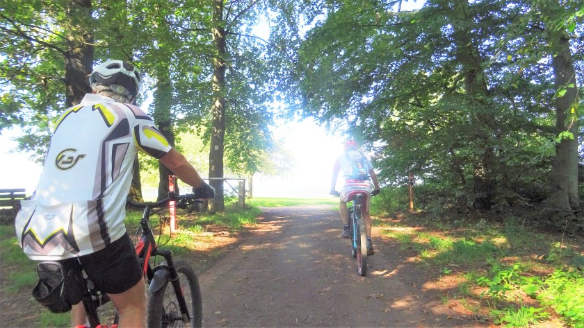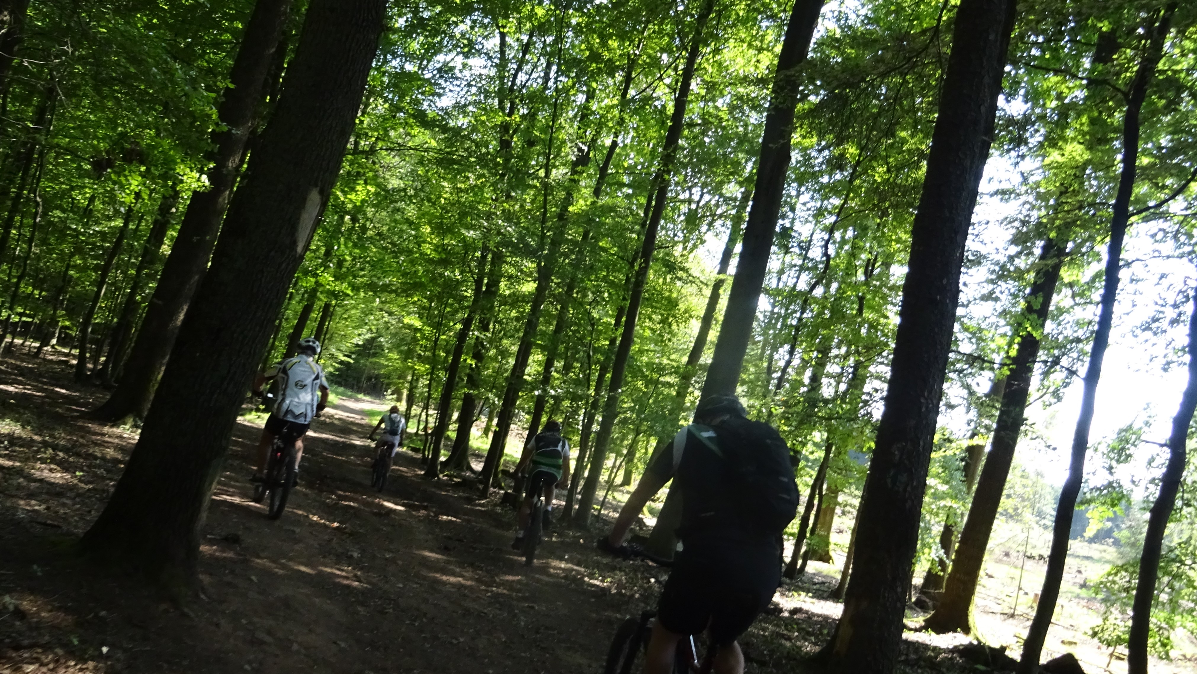 Um dem Meini doch noch was neues (Trailmäßig) zu bieten ist der Guide über die Autobahn, oberhalb von Exweiler zum Heinzenberg, ein kurzer, aber knackiger Weg , steil mit Wurzeln quer überm Weg, leider nur sehr kurz. Durch den Engscheiderwald am Sotzweiler Weiher vorbei fuhren wir nach Hause.
