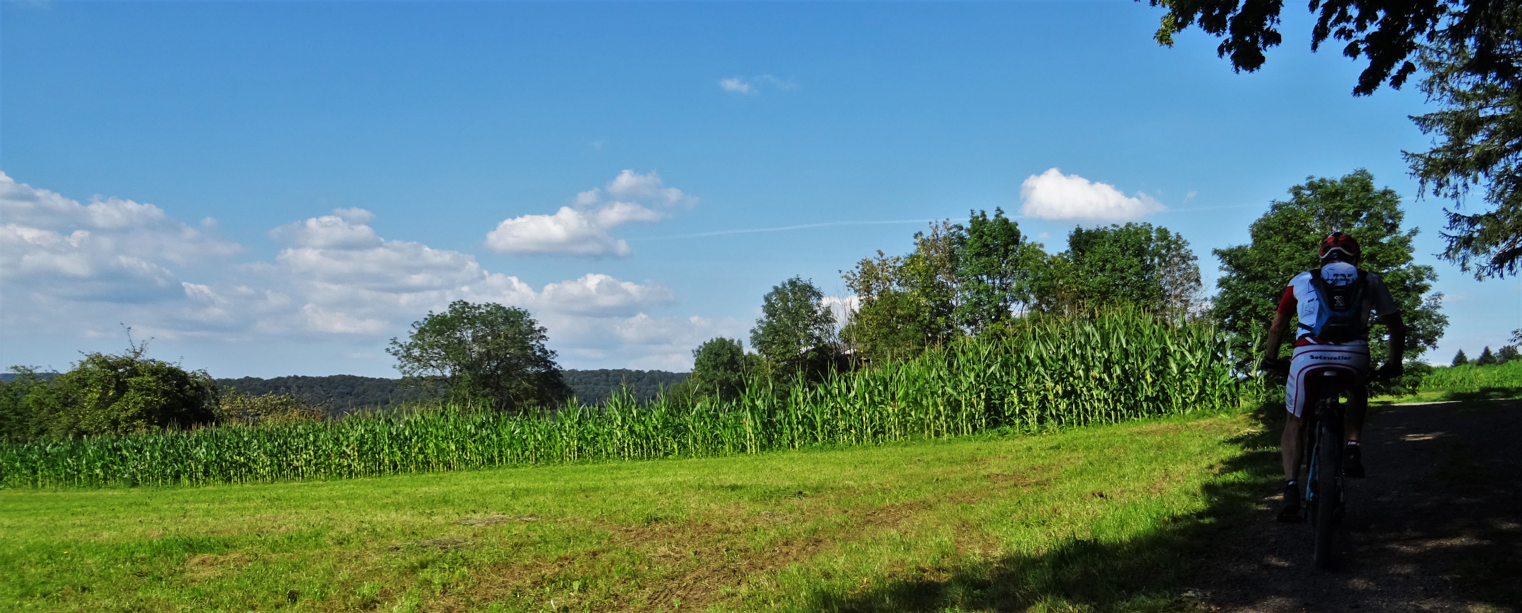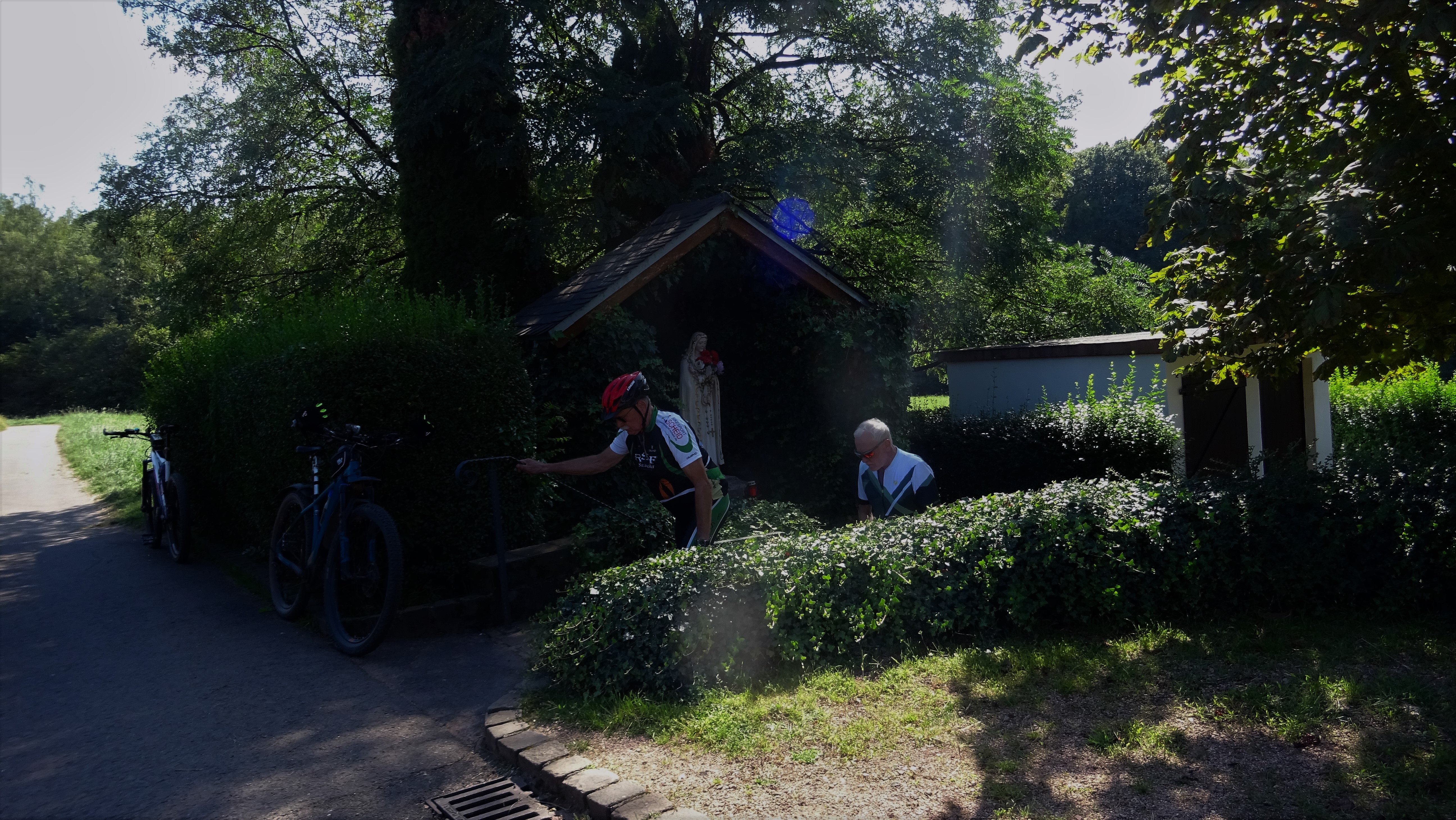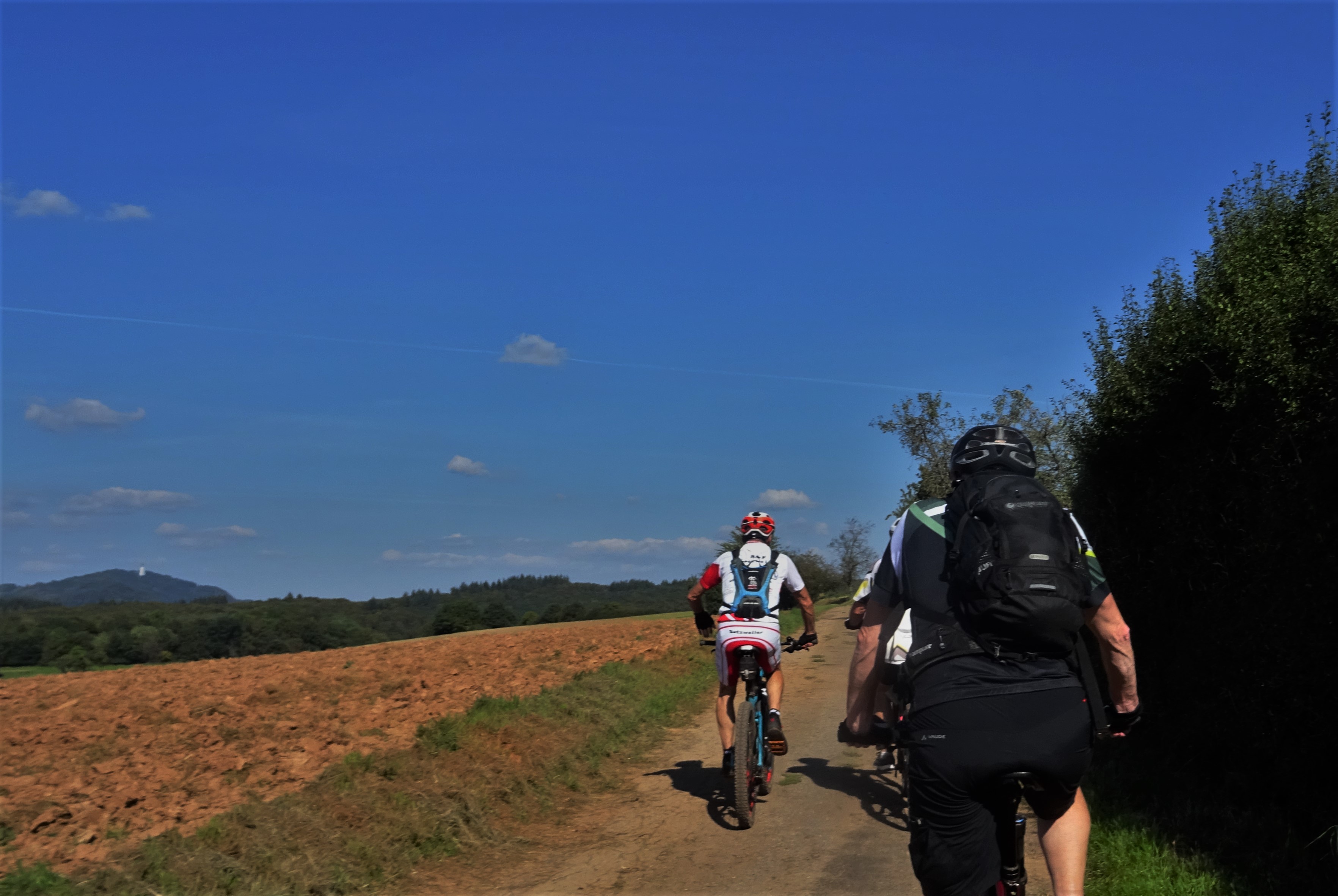 Gemächlich sind wir in den E.wald, die Schwann hoch und fast im Stand auf der Hohen Strasse zum Finkenrech und durch den Schönbuch nach Eppelborn. Auf dem Großen Elmersberg war ein Wander Event (DAS ILLTALER LAND TISCHT AUF! – „KULINARISCHES WANDERWEGEFEST“) Essen und trinken, war alles vorhanden, aber der Guide hatte nur den Trail den Elmersberg und auf den Schäferberg im Kopf. An meinem Elternhaus, am Schützenhaus vorbei zum Rechen und zur Saarlandring Outdoor Kartbahn in Uchtelfangen. Da sind schon ein paar Spezialisten auf der Bahn und es lohnt sich einige Runden lang zuzusehen. Auf der Höhe, durch den Schwarzenheller Wald nach Mangelhausen, am Schützenhaus vorbei ein kurzer Pfad, bis zur Vogelsbornkapelle. Die Bananenpause an diesem Ydillischen Ort, auch hier lohnt sich längeres verweilen. Dann fahren wir an Eiweiler vorbei das Teersträßchen hoch an der Großwaldbrauerei entlang, neben der Landstrasse den Trail in die Habach durch den Winkelwald runter nach Eppelborn.