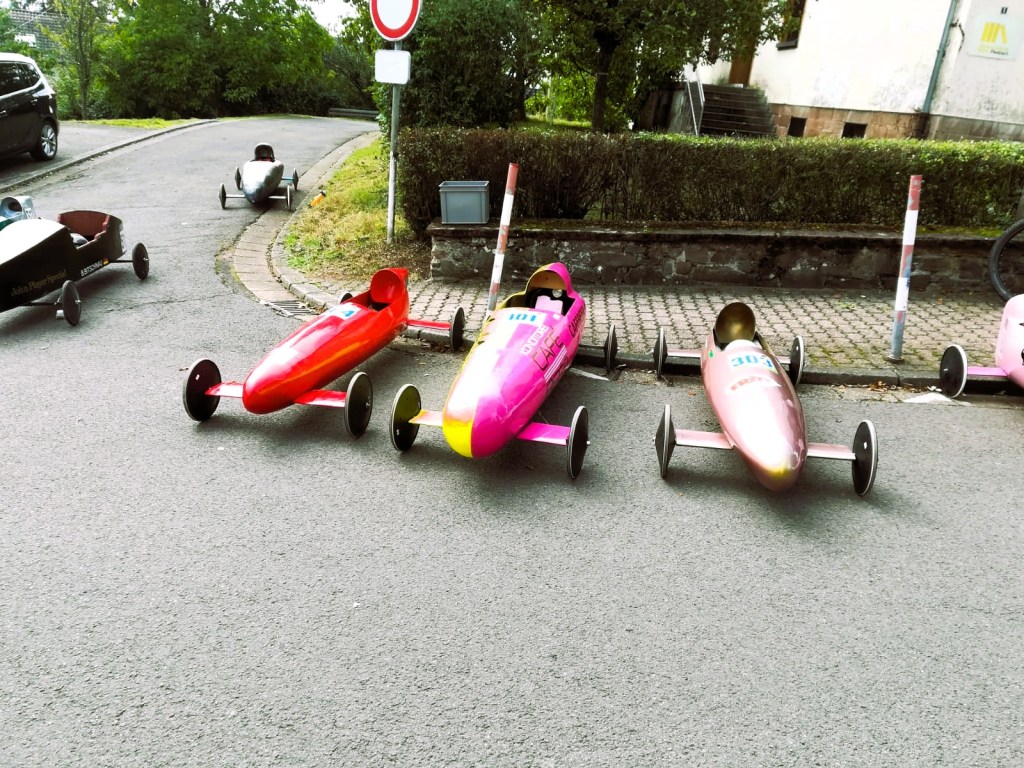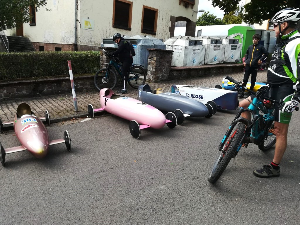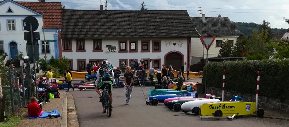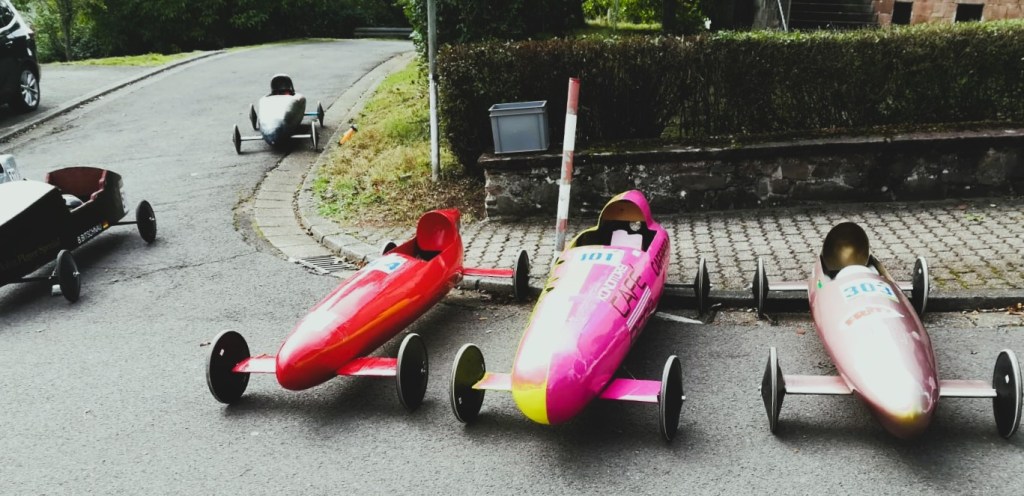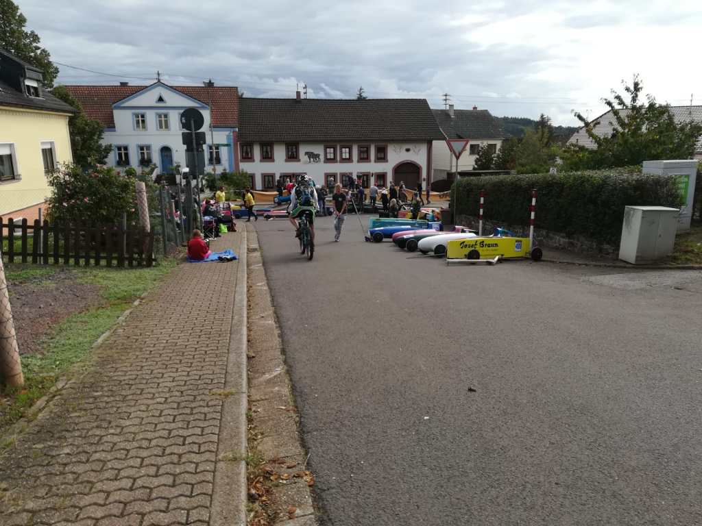 Wiederum nur drei Biker am Start zur Samstagstour. In der Mühlenstraße in Exweller kam uns Heinz entgegen, er hatte wegen einer privaten Feier seine Tour vorgezogen. Zunächst wurde Wolfgangs Apfelplantage auf der Südseite des Litermonts inspiziert. Es gilt festzuhalten, dass dieses Jahr eine reichliche Ernte eingefahren werden kann, ausreichend für Apfelkuchen bis zur Ernte im nächsten Jahr. In Piesbach wurden wir Zuschauer eines tollen Events: ein großes Seifenkistenrennen mitten in der Stadt. Der Startpunkt war unterhalb der Schule auf der Hauptstraße Richtung Kirche. Hier gab es tolle Rennautos Marke Eigenbau zu bestaunen. Einfach nur geil! Das ähnliche Rennen in Selbach kann da auch nicht mal ansatzweise mithalten! Wegen der Sperrung mussten wir uns auf dem Heimweg nach links orientieren, um so den Radweg entlang der Prims zu erreichen. Und welch ein Zufall: in Höhe der Autobahnbrücke kam uns wiederum Heinz, diesmal mit dem Auto, entgegen. Er und seine Frau waren unterwegs nach Illingen zu eine Geburtstagsfeier.