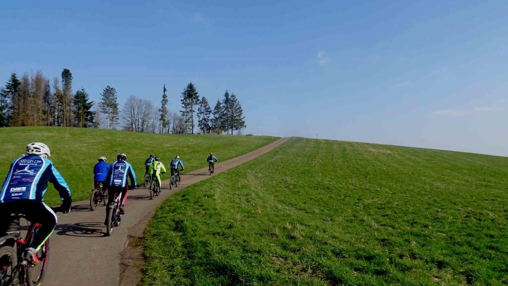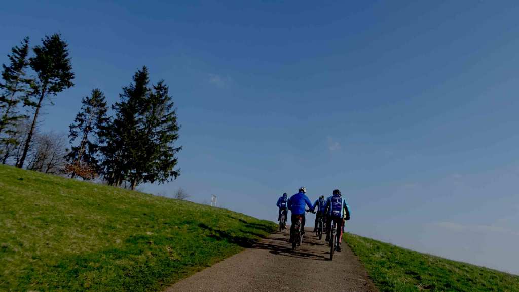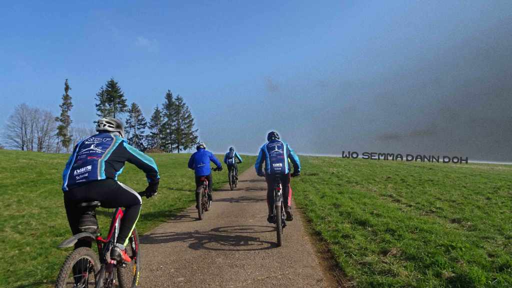 Da hatte Heinz eine tolle Idee, mit dieser Tour. Gemächlich wie immer am Anfang der Fahrt, zum warmfahren in den Engscheider Wald. Kurz vor der Kläranlage haben wir den ersten Platten in diesem Jahr, aber durch eingespieltes Personal mit vielen Händen war das Ruckzuck erledigt und wir konnten weiter, nach Steinbach am Nordring entlang, nach Rümmelbach und in den Moritzwald. Einige schöne Trails, die mittlerweile gut zu fahren sind, Primsweiler haben wir gestreift (dem Kamerad „E“ noch den Heimweg erklärt) und sind Richtung Schmelz, vor den ersten Häusern machten wir unsere Pause.