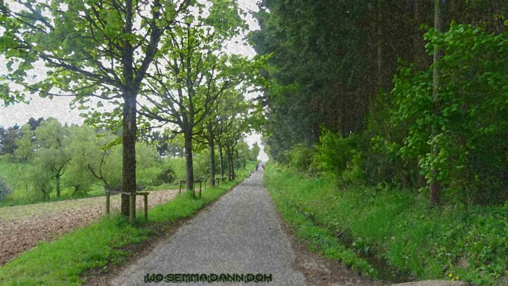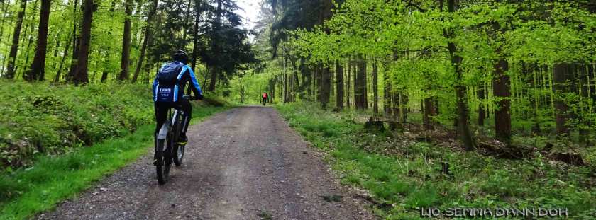 Nalbachtour mit Abwechslung. Bis Schmelz und zur Apfelbaumstrasse hat der Anführer etwas die Route verändert. An der AB Meisterei trafen wir noch Kamerad Heinz, der sein hoffentlich General Überholtes Bike beim Fahrradhändler seines Vertrauens in Thalexweiler abholen wollte. Wir anderen fuhren dem Guid hinterher zur Homesmühle, Rümmelbach, zum Nordic-walking Parkplatz bei Gresaubach und dann runter nach Schmelz, Hüttersdorf und zur Apfelbaum Allee. Auf dem Weg dahin, oberhalb von Hüttersdorf machten wir unserere Bananenpause. In Piesbach trennten wir uns vom „4Vier“ Uhrfahrer E, aber der Rest der Truppe fuhr die große Schleife über Nalbach, Körprich nach Lebach und zurück nach Sotzweiler, wo wir 3 Minuten nach Vier waren.