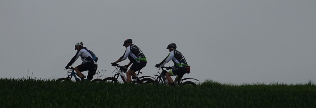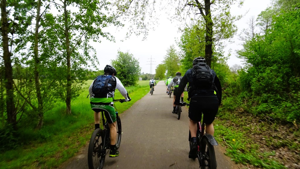 Am 1. Mai war ein Wetter wie im Sommer und heute waren sogar die Windjacken zu dünn, trotzdem waren 7ieben Mann an der Bregg. Vor der Haustür zuerst mal durch den Engscheiderwald zum Exweiler Weiher und dann ein Stückchen Klingelfloß-trail der erstaunlicherweise ziemlich abgetrocknet ist. Weiter nach Eppelborn, am Rosenhof vorbei Richtung Landsweiler. Vor Falsch eid ein kurzer Halt um die Banane zu verdrücken und den weiteren Verlauf zu erörtern. Um den Nordschacht herum und nach überquerung der Strasse nach Wellingen ist der Guide zur Motocross Strecke und weiter nach Körprich. Ab Knorscheid auf die Trasse bis Lebach, durch Aschbach und Thalexweiler nach Hause.