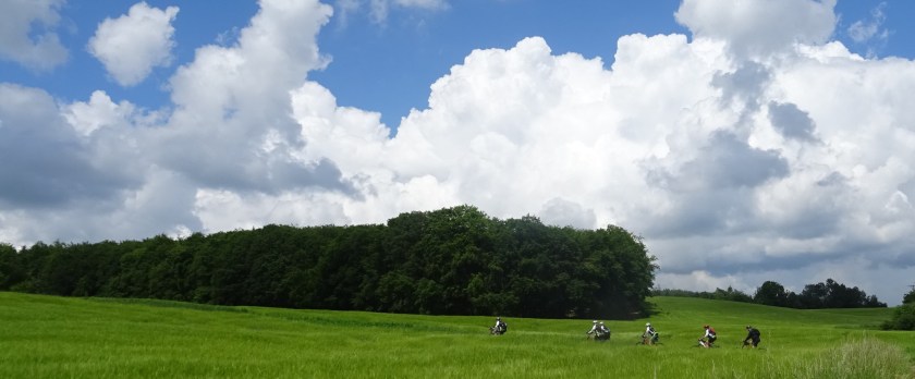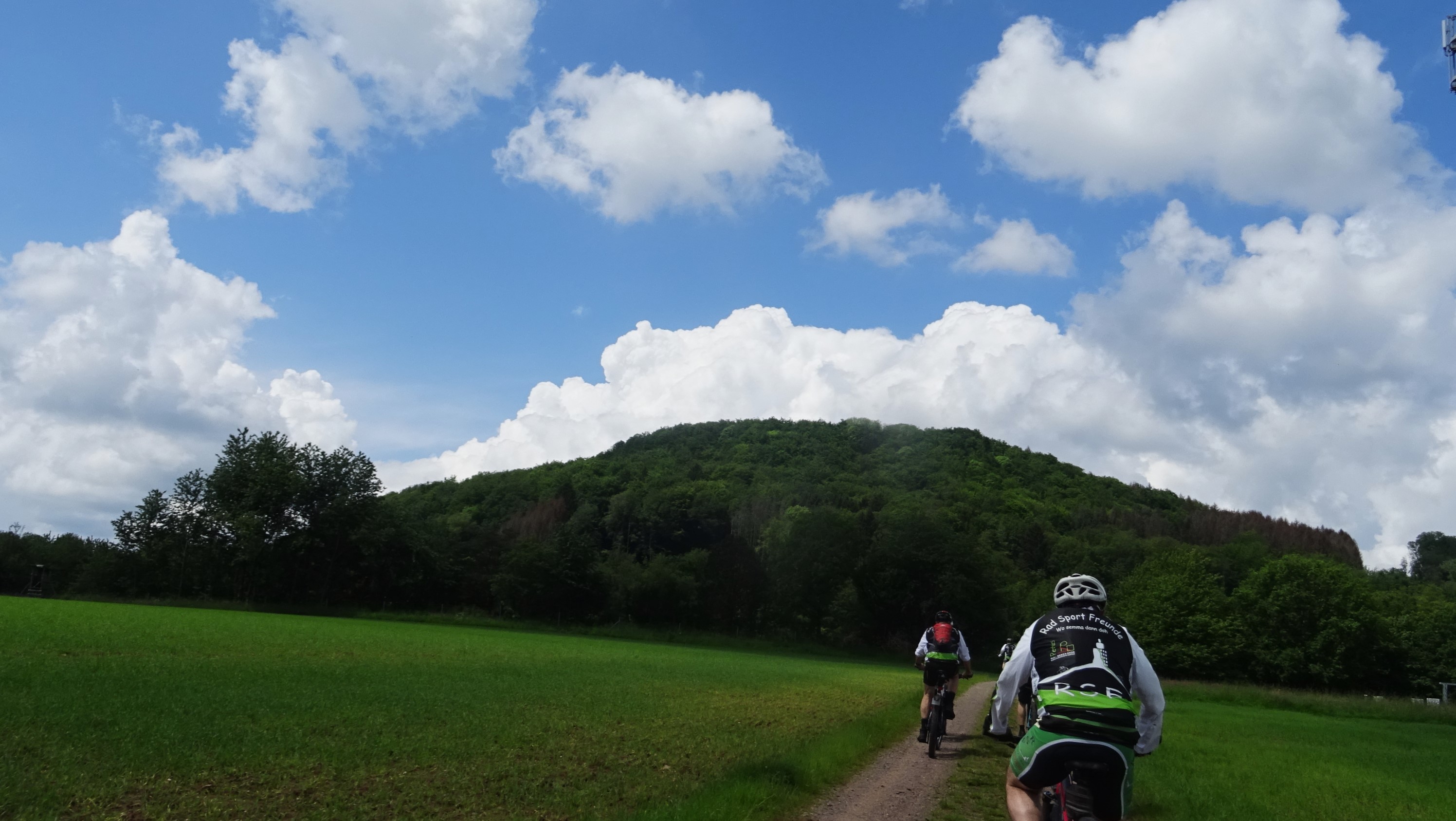 Neun Mann, obwohl einer schon beim losfahren abgesprungen ist (Andreas hatte seine Tour schon hinter sich), sind zu dieser StrassenTrocken Tour gestartet. Die ersten Kilometer Gemütlich, damit man sich viel erzählen konnte von dem großen Regen, Hochwasser und Fußballergebnissen. Ab Nonnweiler zog sich der Himmel ganz schön zu, es sah nach Regen aus und der liess auch nicht lange auf sich warten. Nachdem wir bei Pizza Wagner die Bananenpause hinter uns hatten kamen die ersten Tripse und mit viel Schmackes wurde die Rückfahrt begonnen. Am See zogen einige ihre Regenjacken über und der Regen hörte Schlagartig auf.