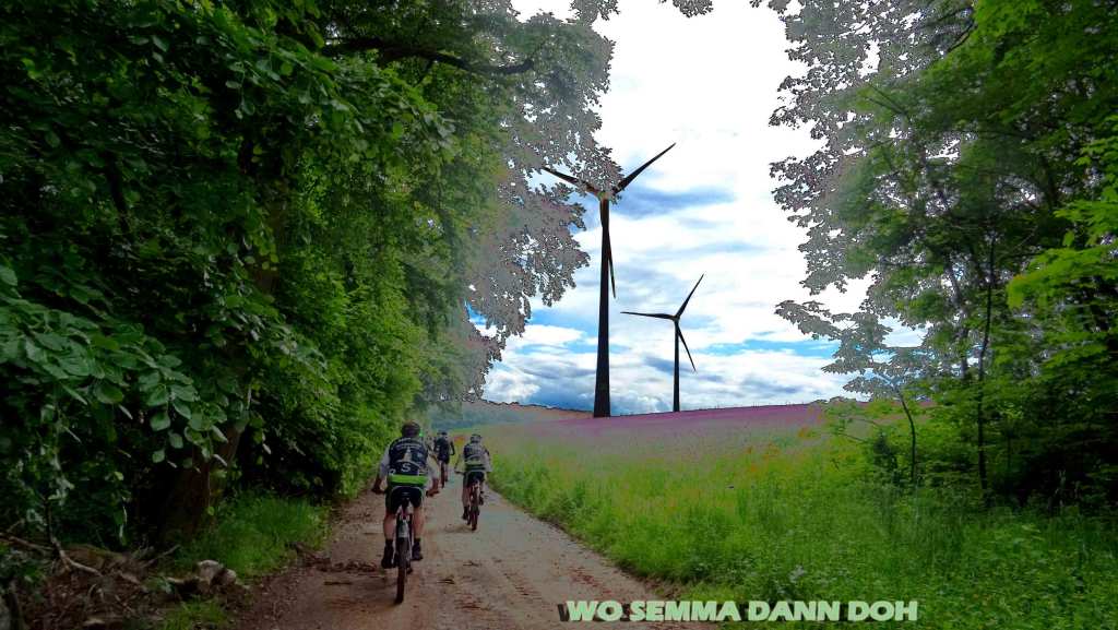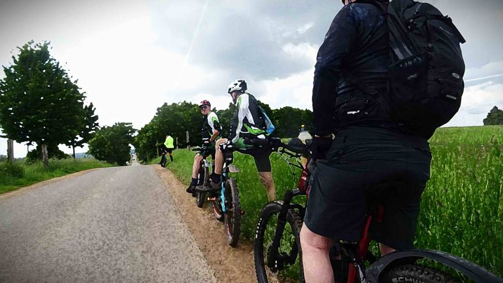 die Nalbachrunde. Wettermäßig sah es toll aus als wir zu siebt von der Bregg starteten aber im Verlauf der Runde auf der Höhe von Landsweiler nach Falschd zog sich der Himmel zu und anstatt vom Nordschacht nach Saarwelingen sind wir am Mittelpunkt des Saarlandes vorbei, gleich zum Wildgehege und der Himmel tat sich auf. Die Rast machten wir noch an dem Unterstand da es aber nicht mehr aufhörte zu Regnen sind wir weiter nach Bilsdorf, Lebach und Thalexweiler. Da war die Strasse so trocken, dort ist nicht einmal ein Tropfen Wasser runtergekommen. In Sotzweiler waren die Klamotten schon fast wieder trocken.