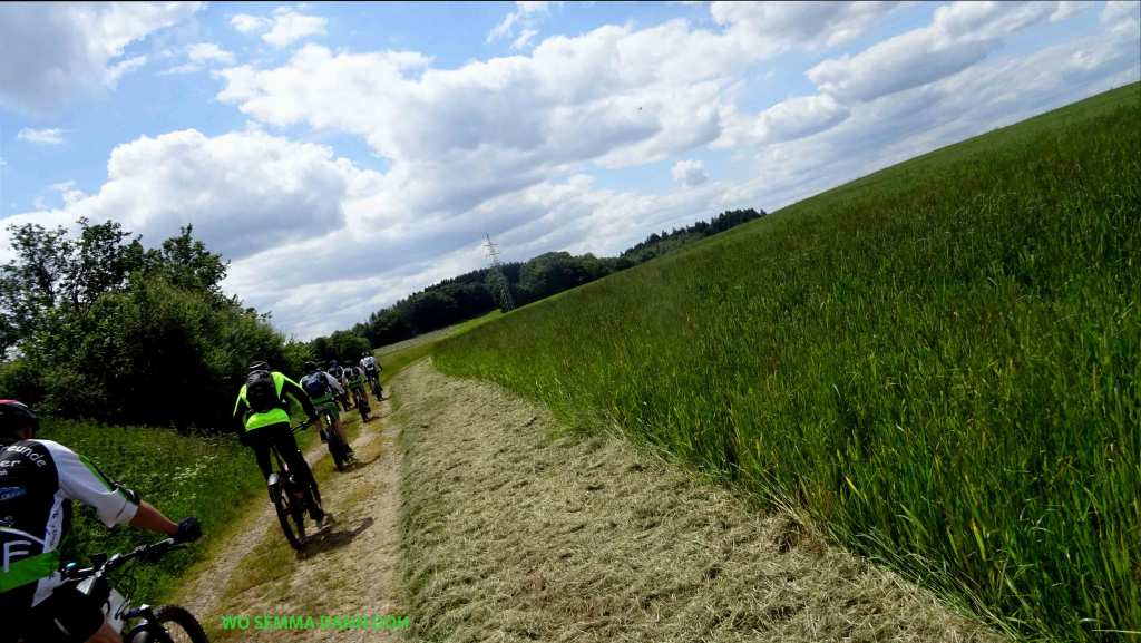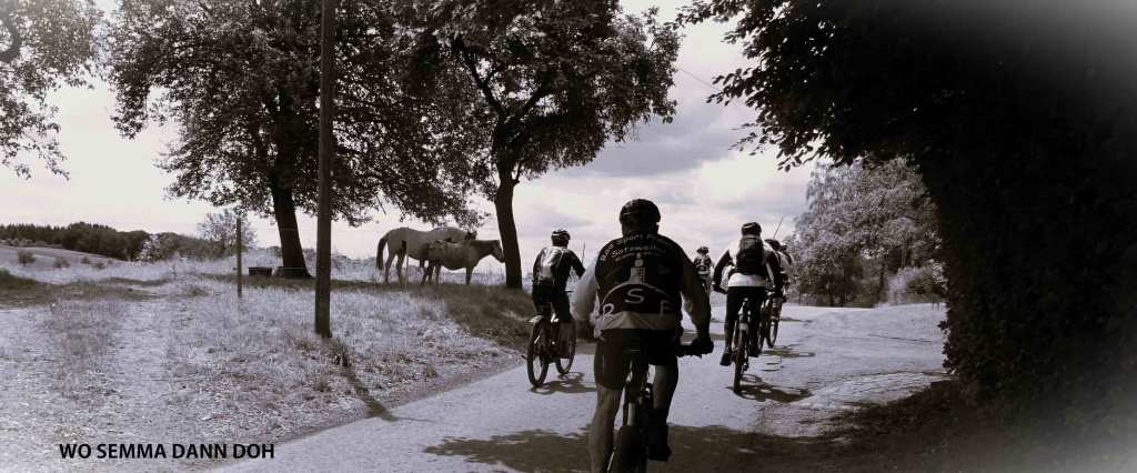 …der Meister aller Klassen, er hat nichts verlernt und auch heute wieder eine tolle Strecke mit uns gefahren. Zum Warmfahren erstmal in den Engscheider-wald auf der hohen Strasse Richtung Segelflugplatz und dann gleich ein Stück Biberpfad bis Ortsausgang von Marpingen nach überqueren der Strasse wieder auf den Biberpfad, aber nun steil hoch bis zum Grubenstollen. Weiter zur Rheinstrasse und Richtung Hääd, da ist er an den letzten Häusern links abgebogen und wieder nach Marpingen und Alsweiter und zur Wareswaldstrasse in Tholey. Hier machten wir Quasi auf halber Strecke die Bananenpause. Der weitere Verlauf am Orletal und Theley vorbei zur Imsbach und Hanacker. Weiter nach Hasborn und Schrupps Phantasialand entlang, nach Dörsdorf , Steinbach und Thalexweiler, hier habe ich mich vom Hauptfeld getrennt und bin zum Fahrradhändler meines Vertrauens, da die Elekrik meines Bikes immer wieder Aussetzer hatte. Das Fachpersonal hat nach kurzem Check die Sache in Ordnung gebracht. Den Rückweg schaffte ich dann locker, an der Kläranlage vorbei die Schwann hoch und schon war ich dahemm.