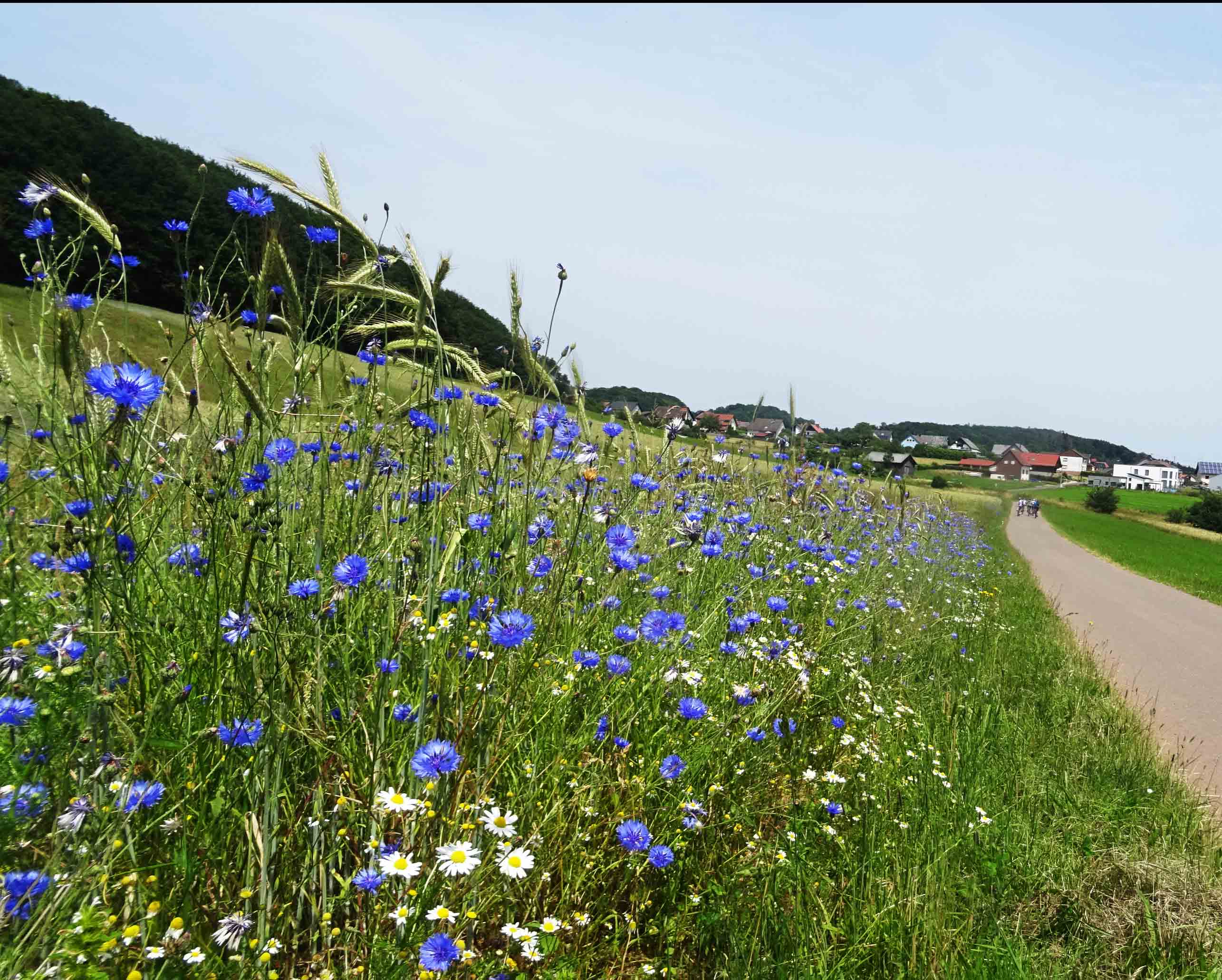 Große Tour 60 Kilometer in praller Sonne davon mindestens 95 % auf freier Flur nur Teer und Schotter, erst auf den letzten Kilometern in Tholey der Philosophenweg zur Dick Eich und zum Bläsberg brachte etwas Abkühlung und schattige Wege. Wir im Saarland sind doch mit Wald gesegnet und neben fast jedem Teerweg läuft auch ein Trail oder Waldweg, aber der Geid (KK) hatte andere Pläne und keiner weiß welche. Sieben Mann an der Bregg, auf alles vorbereitet nur nicht auf soviel Sonne. Gottlob hatte „Mei ling“ am Wendalinus Radweg den Kiosk auf und wir konnten den flüssigkeitsverlust halbwegs auffüllen.