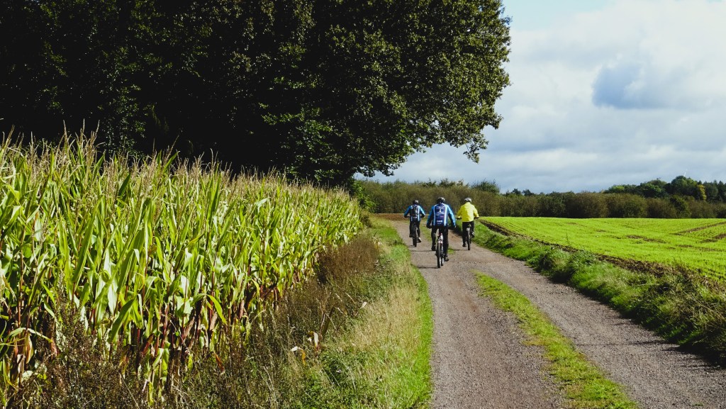 An dieser Feiertagsrunde waren leider nur Vier Mann die um Vier Zuhause sein wollten, der Rest der Truppe, wahrscheinlich auf dem Schaumberg beim Wein und Käsemarkt. Den Guide machte heuer der Alterspräsident und da keine Kopftücher dabei waren, hat er eine eine tolle Strecke ausgesucht. Zum See wollt er trocken aber mit einigen Schleifen von der Normalen Strecke abweichend.