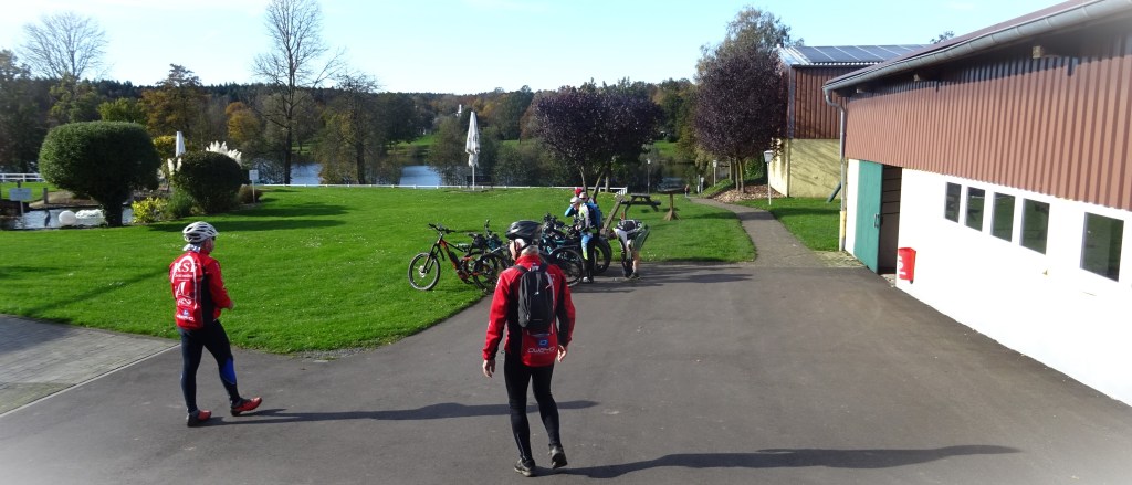 …nach Kell am See und wieder ein stattliches Teilnehmerfeld mit 10 Mann. Die Strecke wie jedes Jahr, ausser den früheren Jahren wo wir an der Gomms Mühle vorbei zum Steinbruchswald nach Bierfeld fuhren, aber mit Eröffnung des St.Wendler Radweges fahren wir bis Nonnweiler, durch die beiden Tunnel, was immer wieder etwas Abwechslung bedeutet und daran Anschließend durch den Hermeskeiler Steinerwald, an den Drei Mühlen, Katzenmühle, Nickels und Blasiusmühle vorbei nach Hermeskeil an den Bahnhof. Hier natürlich wie immer die Pause um mit frischen Kräften die letzten 15 Kilometer nach Kell zu schaffen, aber ohne einen der Wölfe zu Gesicht zu bekommen. Im Restaurant Fronhof wurden wir schon erwartet und so wurde auch unser Essen zügig an den Tisch gebracht. Eine Gute Stunde mit Fachsimpeln und wir nahmen den Rückweg in Angriff. Armin der einzige ohne Motor liess dann mal den Satz fallen „wenn ich gewusst hätte wie schnell ihr fahrt wäre ich mit meinem Spezialized S-Works Turbo Levo SL Carbon gefahren“. Ausser dass einige heute Morgen Grünen Tee zum Frühstück hatten und alle paar meter rechts ran fuhren kamen wir gut voran und das Wetter am Morgen recht trüb lockerte immer mehr auf, sodass der Rückweg dann in praller Sonne ablief. Damit doch noch ein paaar Höhenmeter dazu kamen sind wir von Primstal nach Hasborn noch an der Wiesbach hoch und durch die Seiters den Hühnerberg runter zur Lach und Weiler nach Hause.