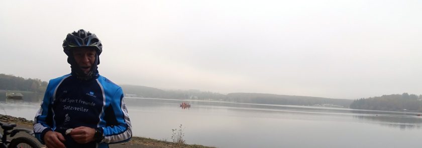 Die Strecke sauber auf Teer durch Leitzweiler zur Imsbach und nach Selbach. An Noh und Elzenberger Mühlen entlang zum See. Unsere Pause machten wir diesesmal in der Nähe des Festplatzes auf der Bosener Seite. Benno gab noch einen zum Geburtstag aus, die Banane wurde verdrückt und schon ging es weiter. Neunkirchen Nahe Richtung J.A. Mühle, in Theley am Friedhof vorbei nach Leitzweiler und Sotzweiler.