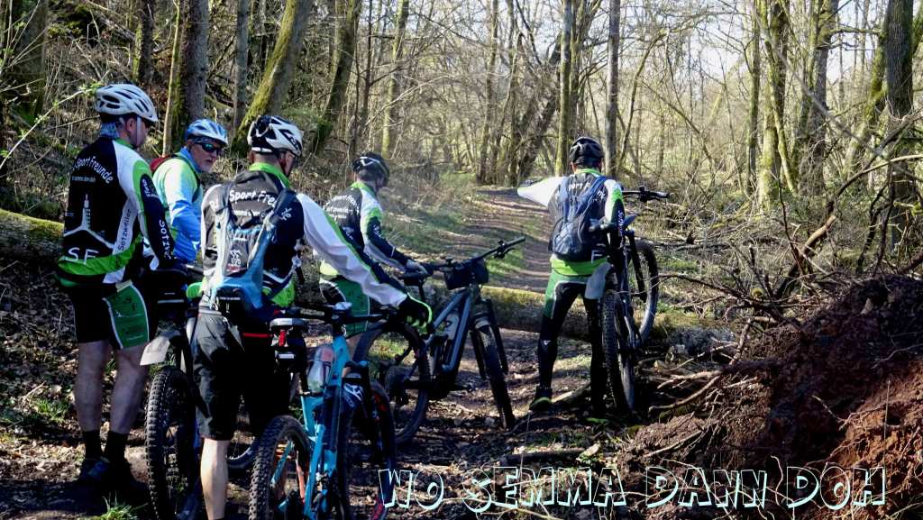 Der Guide hatte heute eine schöne Strecke ausgesucht, viel Wald, einige Trails und Wanderwege sodass man richtig Lust zum Radfahren hatte. Von Steinbach ging es rauf auf Höchsten und an der Höll vorbei durch die Fritschenheck zum Horst und auf den Erzgräberweg mit dem schönen Trail hinter dem Werk vom „Meiser“ am Bahnhof entlang nach Limbach und weiter an der Prims vorbei nach Überlosheim und wieder wie sooft auf der Strecke mit überklettern eines umgestürzten Baumes. In Büschfeld an dem schönen Weiher mit Hütte dann unsere Pause.