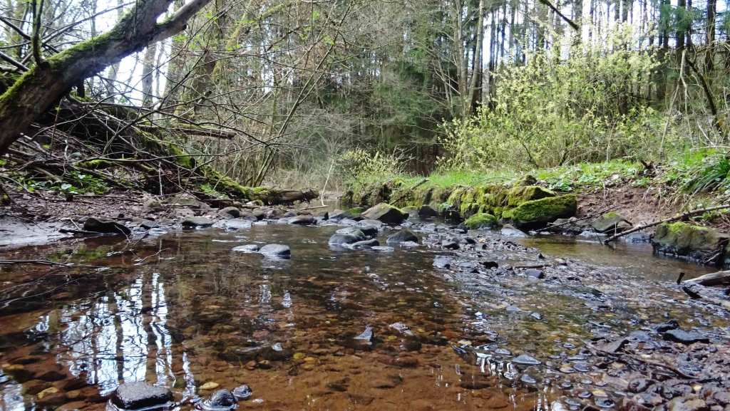 Die Strasse am Reiterhof vorbei ist immer noch gesperrt, so bin ich dann den Umleitungspfeilen gefolgt und durch Bliesen zum Wallesweiler Hof, am Golfplatz vorbei Richtung Winterbach, aber vorher links durch den Wald zur Rheinstrasse. In der Nähe des Exweiler Hundeplatzes auf einen Trail Richtung Hüttigweiler und dann an der Lauftreff Strecke rechts abgebogen nach Wustweiler zu dem Weiher an den ich wollte und mit Kamerad Hans nach dem rechten gesehen, etwas an der Hütte aufgeräumt, was Isotonisches getrunken und dann machte ich mich auf den Rückweg nach Sotzweiler. Dirmingen, Wutzewalter, am Finkenrech vorbei auf die Hohe Strasse und durch den Engscheiderwald nach Hause.
