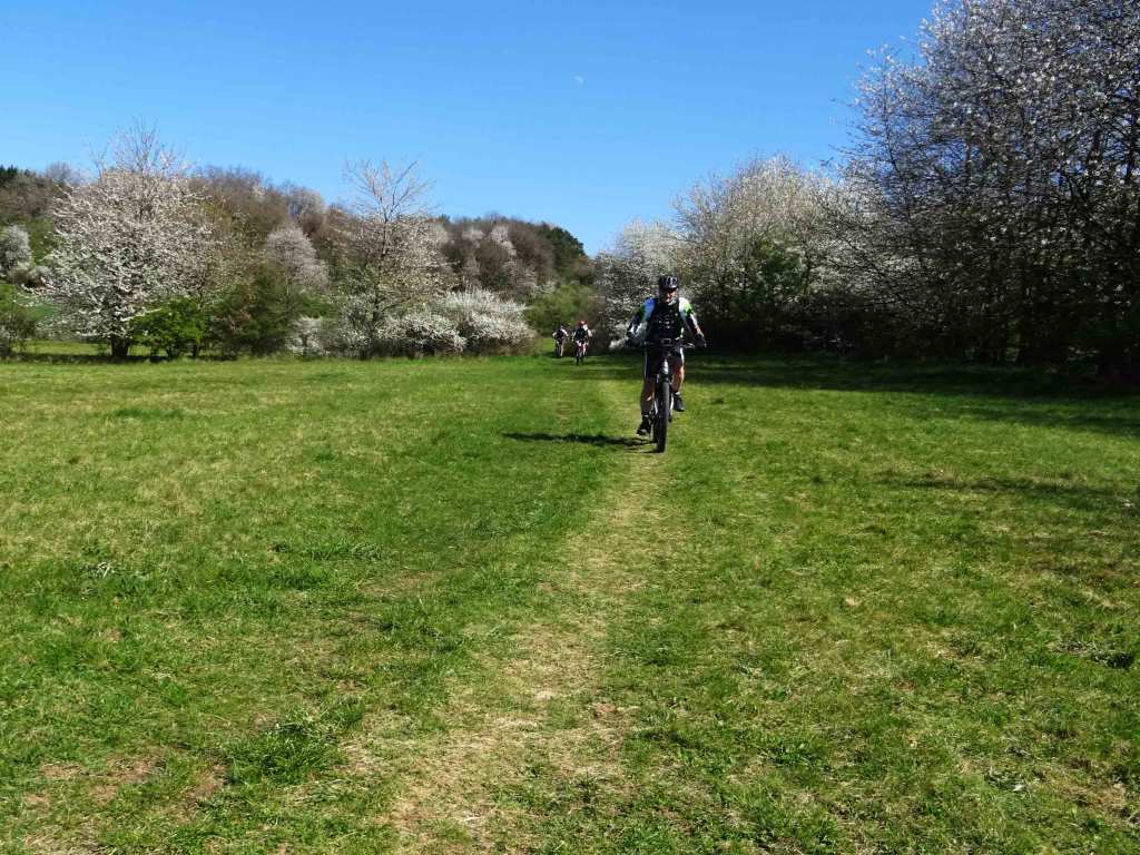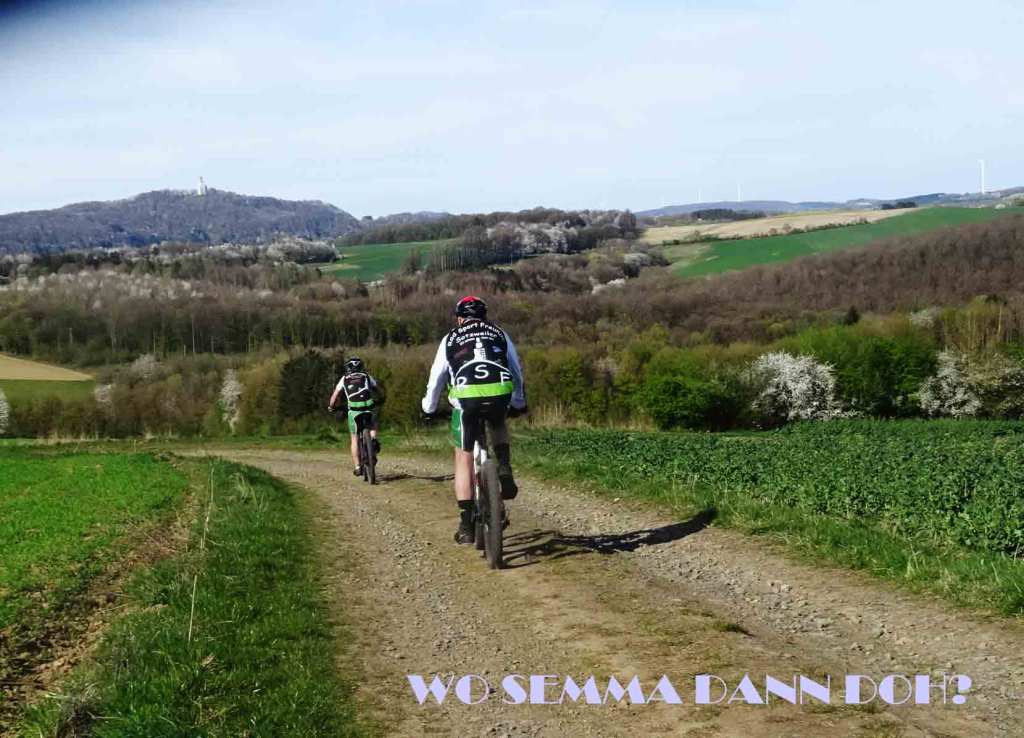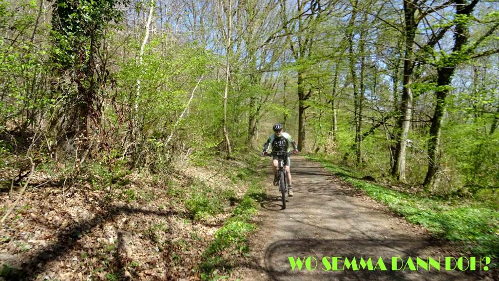 Den Start dieser Tour machte ich durch die Niederwies, am langen Eugen vorbei nach Dörsdorf und rauf auf Höchsten. Hinterm Cafe Waldfrieden auf dem Wiesenpfad Richtung Nordring und runter nach Aschbach, aber vorher noch durch den Matzenböscher Wald mit ein paar Trails um die Windräder herum. Ich wollte unbedingt in die Humes, was wie immer Maulen auslöste, aber es hinderte mich nicht es doch zu tun. In Aschbach am Sportplatz vorbei und dann links hoch mit Blick zum Schaumberg, was heute fast von jedem Streckenabschnittt aus zu sehen war. Über den Galgenberg nach Eppelborn zum Dirmingerwald. An der Steinrausche (die Humeser sagen Steinkippchen) machten wir unsere Pause. Im Wald dann nochmals einen Trail, aber den Schäferberg hoch und dann in die Humes durch die Seiters, am Schützenhaus und der Kartbahn von Uchtelfangen vorbei nach Kaisen. Kamerad „4 Uhr“ drängte dann mächtig und so bin ich nach Wustweiler und an der Strasse entlang nach Dirmingen, hier hat er dann die Truppe verlassen. Der Rest der Mannschaft ist am Frankenbacher Hof vorbei nach Berschweiler und im Bibergarten wurde noch ein Zwischenstpp eingelegt, was allen Gut gefallen hat. Viele Wege führen auf die Hohe Strasse und wir nahmen den steilsten, aber mir E-Power ist das locker zu machen.