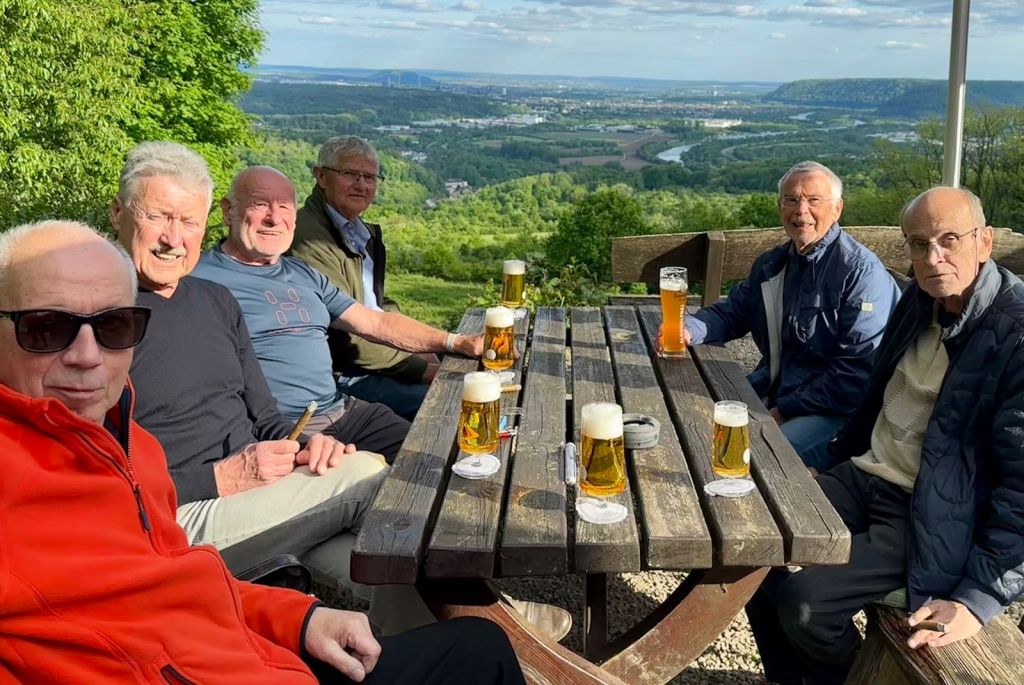 Immer wenn niemand sich aus der Deckung traut, um einen Streckenvorschlag zu machen, übernimmt Hartwig die Führung. Und so konnten sich heute neun Biker an obiger Strecke erfreuen! Da wurde nämlich an Höhenmetern nicht gespart. Und es ist auch hilfreich, wenn nicht ständig die Nachfrage nach der Streckenführung kommt, sodass es dann oft zu überraschenden Abweichungen von dem vermeintlichen Ziel kommt. Nach ca. 23 Km legten wir unsere obligatorische Pause an einer Bankgruppe im Wald kurz vor Bosen ein. Richtig geile Tour mit kurvigen und engen Trails, das Richtige für Genießer! Wenn einer der Biker auch noch seine Blase in den Griff bekommt sparen wir auf dieser Strecke mindestens eine Stunde Fahrzeit ein! Auf dem Bild könnt ihr sehen, wo ich am Dienstag war, auf dem Fischerberg in Beckingen