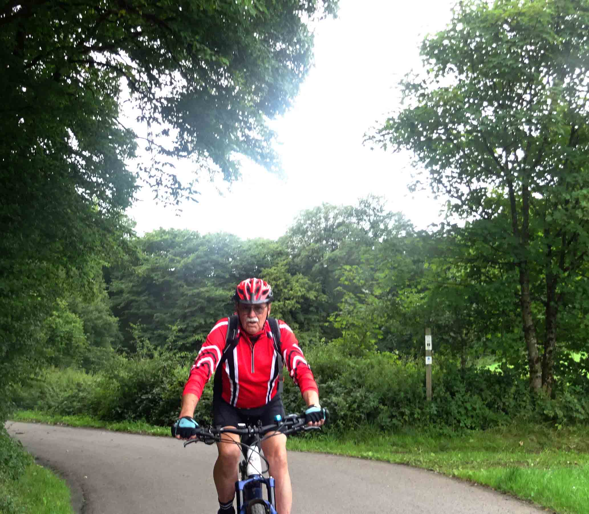 Geburtstagstour von Erich, sollte eine schöne Tour werden, war es, aber auch eine „Interessante“. Der Hinweg den Blasiusberg hoch zur dicken Eiche, auf dem Philosophenweg am Schaumberg entlang zur Wareswaldstrasse und auf dem Wendalinus Radweg bis St.Wendel. Am Skaterpark, legten wir die erste Pause ein. Beim weiterfahren versagte wieder mal meine „Technik“ Handy und Bike wollten nicht mehr miteinander und zu allem Überfluss habe ich auf dem Smartphon Drei mal die falsche PIN eingegeben, sodass sich der Motor nicht mehr einschalten ließ. Die Kameraden mit vielen guten Vorschlägen wie ich am besten nach Hause käme (so ein E-Bike ist ziemlich schwer wenn der Motor versagt) Hartwig hatte dann den richtigen, sie wollten mich die Hügel hochdrücken. Zwei Mann, einer links der andere rechts und dann ging es los und es hat super funktioniert. Auf der Höhe der Rheinstrasse ging es dann fast ohne, da es bis Berschweiler nur noch flach und auch abwärts ging. Im Biergarten bei Christine hat das Geburtstagskind und der Schnapszahlfahrer (8888 Km auf dem neuen Bike) eine Runde ausgegeben und das Malheur war schon bald vergessen. Zu allem Glück kam unser Kamerad „Meinrad“ auch noch, ohne Bike dafür mit Auto und „mein Rad“ Wurde dann Huckepack ins Auto verladen und der Rückweg ohne Muskelkraft nach Sotzweiler kam mir vor wie im Fluge.