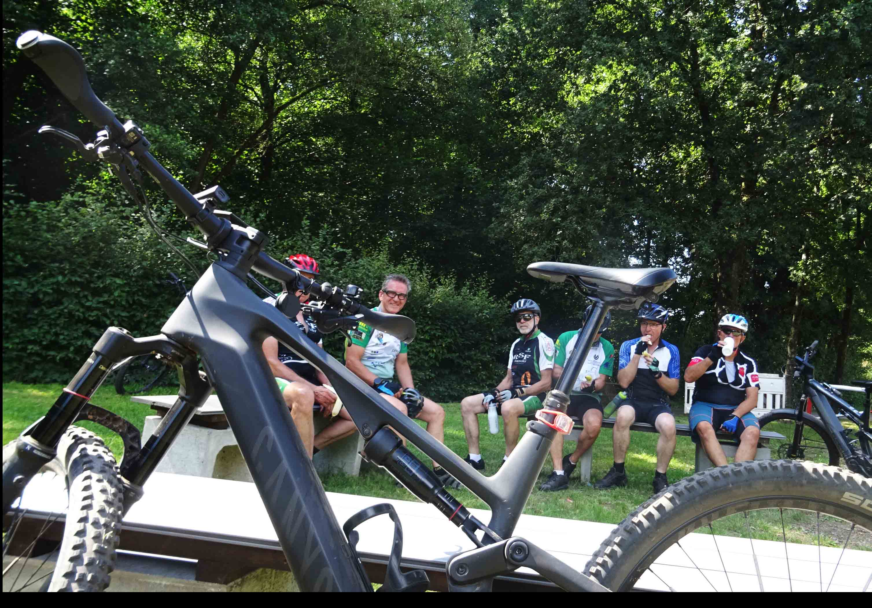 Aber wir liessen uns nicht aufhalten und Klaus nahm den Weg nach Stennweiler, Welschbach und wieder zurück nach Hirzweiler und wieder beim ehemaligen Karl`che vorbei nach Berschweiler und Schnurstracks in den Bibergarten. Das ein und andere Isotonische Getränk füllte den Flüssigkeitsverlust und als der Bier-Garten sich langsam füllte machten wir Platz für die Nachfolgenden. Wieder zur Hohen Straße und durch den Engscheiderwald zurück auf den Schrödersberg. Der Guide hat seine Sache richtig Gutgemacht!