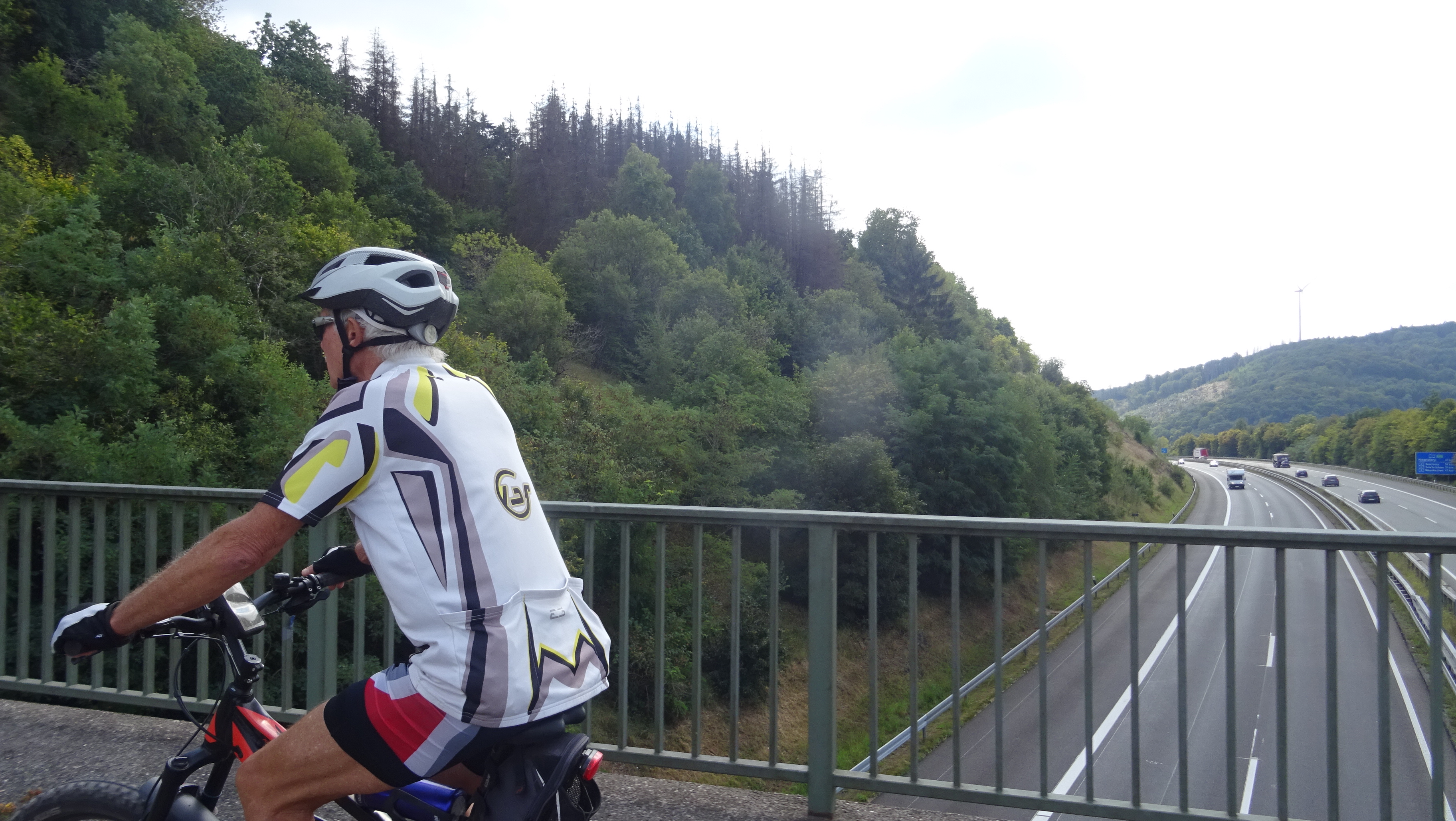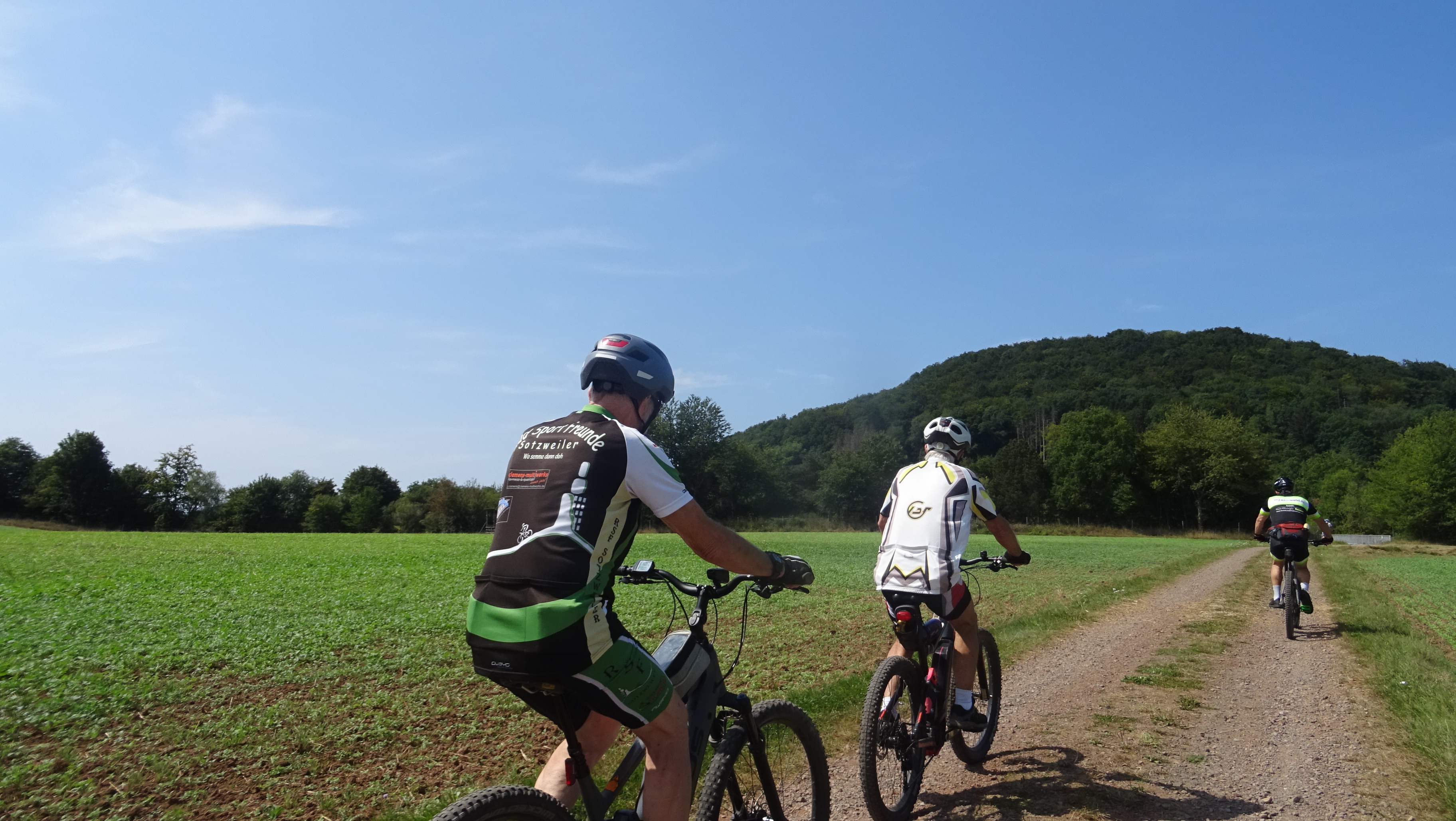 „Eulenkreuz“ eigentlich schon eine Klassikrunde für uns, aber dann doch wieder spannend wenn der Guide den Streckenverlauf ändert. Acht Mann an der Brücke, obwohl gegenüber der Tour vom Dienstag einige fehlten, Kamerad Hartwig führte uns über die Sombach nach Primstal, am Naturbad vorbei nach Nuhweiler, Krettnich und Dagstuhl. Auf dem Bruder Klaus Weg den er erstmal um eine Abzweigung verfehlte, zum Ziel Eulenkreuz. Biergarten gibts da oben keinen, so verspeisten wir nur unsere Bananen und der Guide fuhr den Berg weiter rauf, auf der Höhe ist er dann einen Weg nach Kastel, den ich so noch nicht kannte. Und der Kilometer und Höhenmeter (879-1130 oder, oder) noch nicht genug, durch den Ort und Autobahn überqueren auf dem „K&K Weg“ den Peterberg hoch, an der Sternwarte und Kapelle vorbei, Richtung Selbach und Katharinenwald. Am „Roten Meer“ entlang zur Sombach und durch die Lach nach Hause. Ein paar neue Wegabschnitte, die diese Runde Interessanter machten taten dieser Strecke recht Gut.